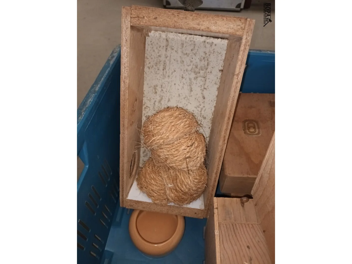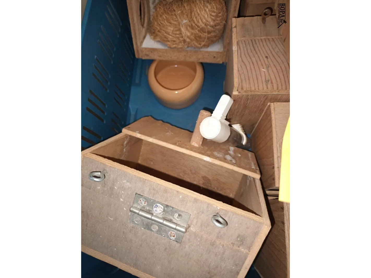 Vogelkastjes, vogelnestjes en 2 sigarendozen. Blauwe bak niet inbegrepen.