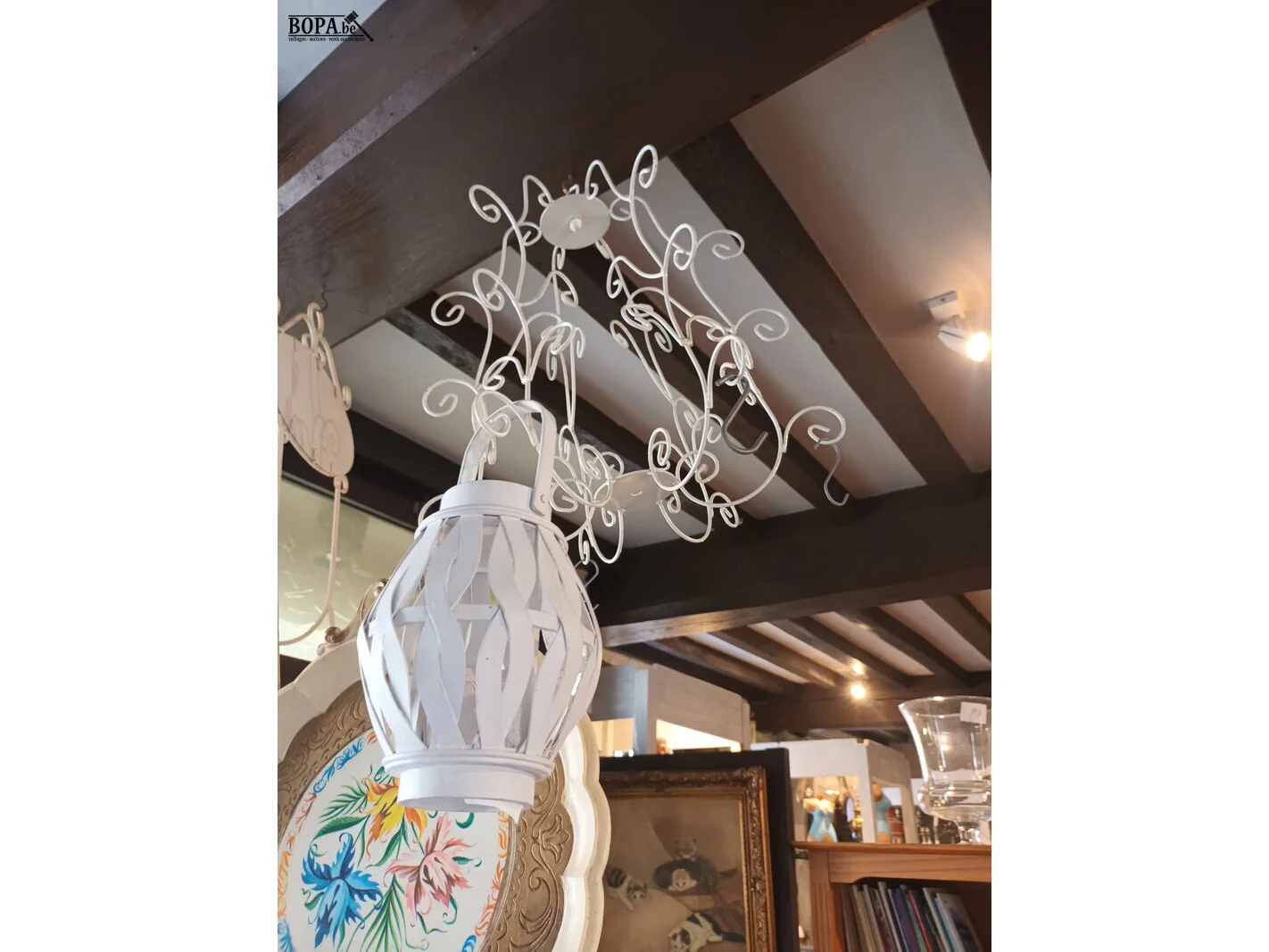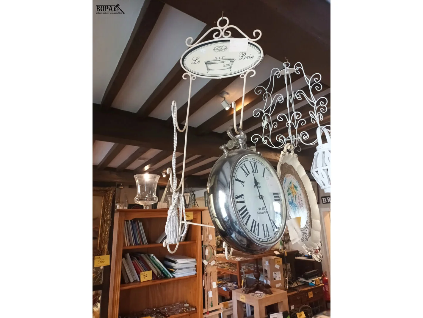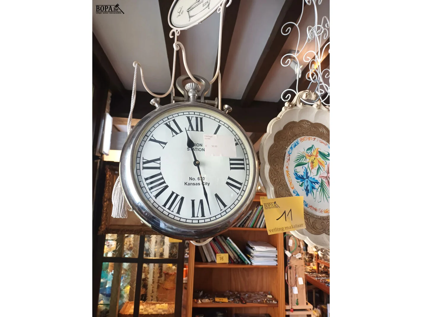 Decoratie. 5 stuks. Wandrekje, 2 stuks hangende plafonddecoratie, een dienblad en een klok.