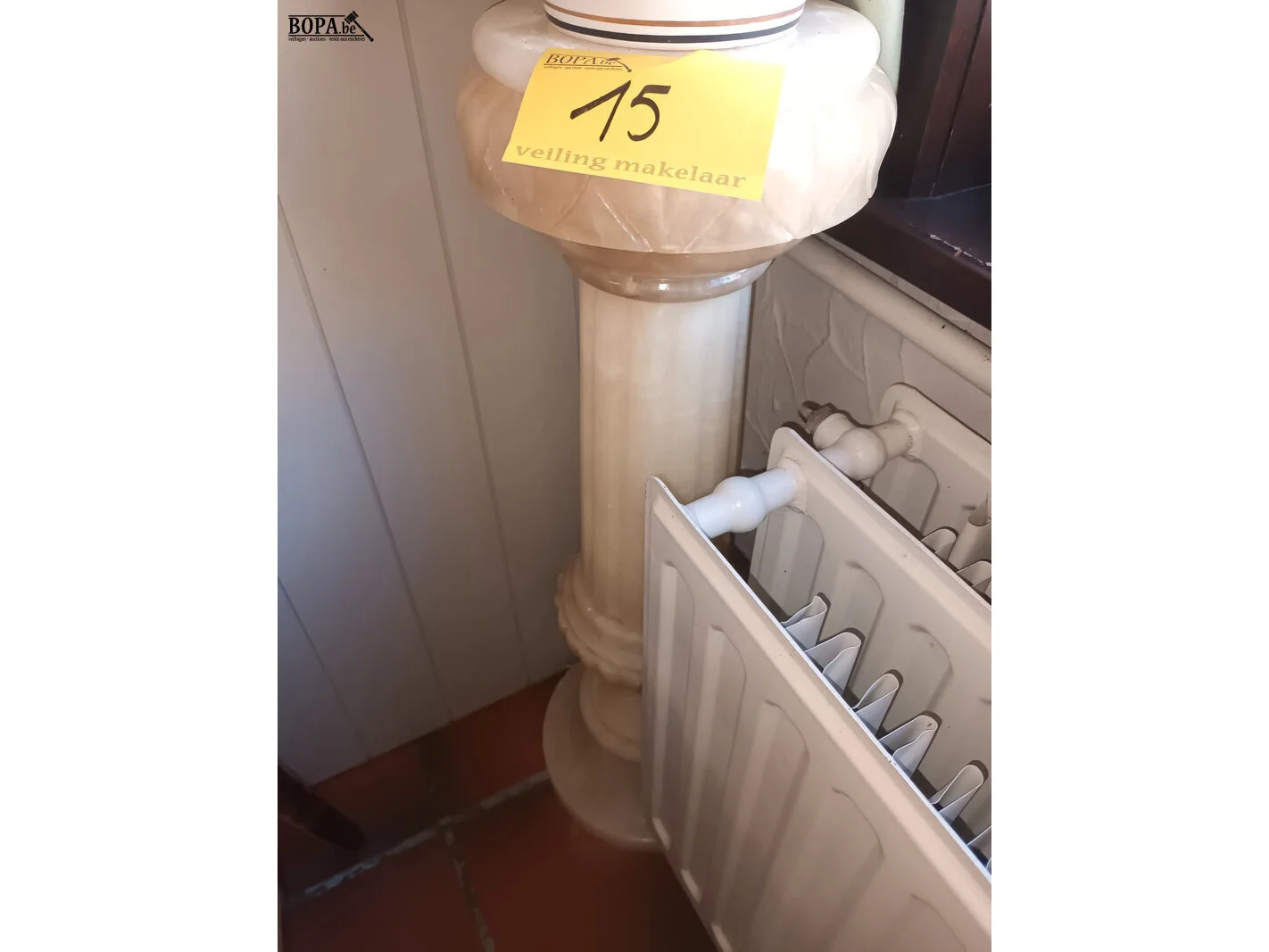 Marmeren plantenstaander (hoogte cm) en bloempot.
