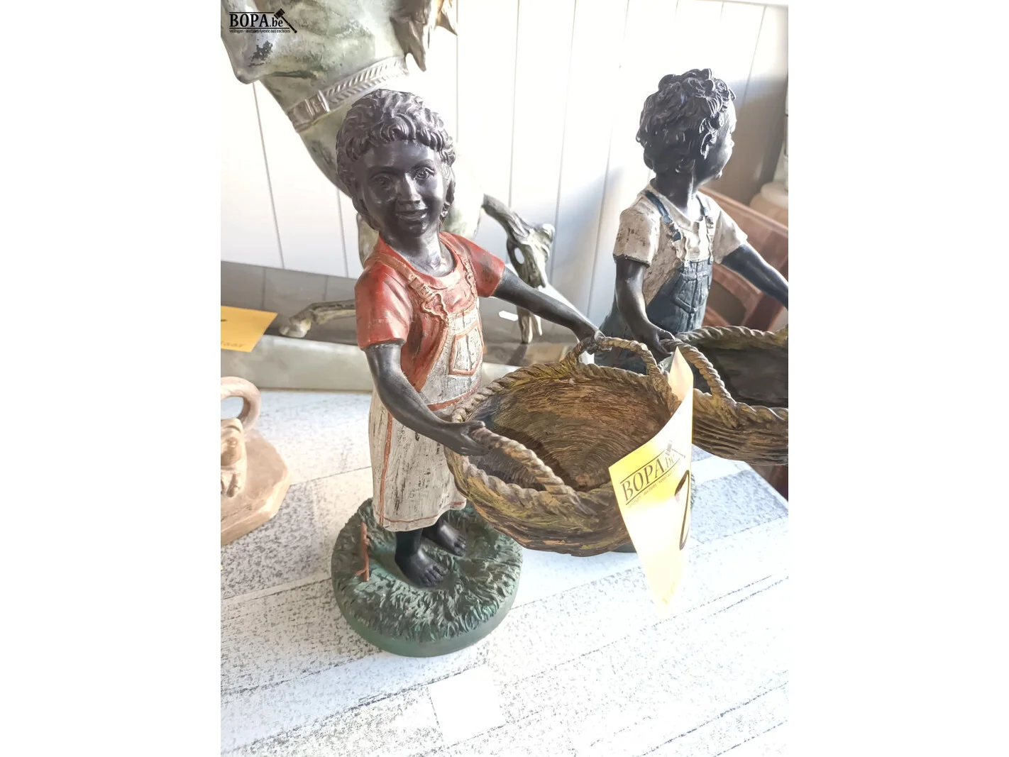 Beeld druivenplukkers in faux bronze. 2 stuks. Hoogte 30 cm.