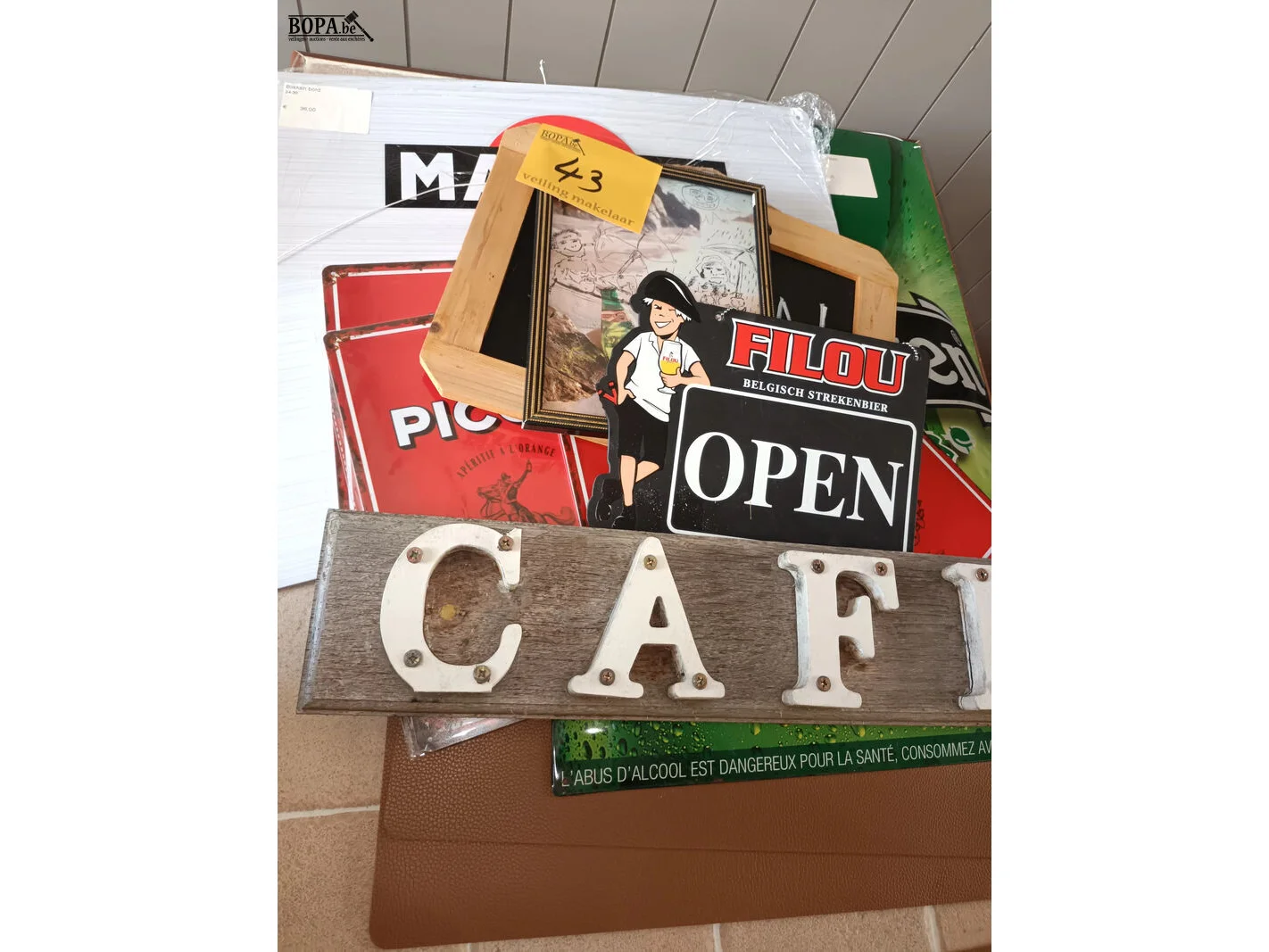 Reclame borden. 11 stuks. Martini, Picon, Filou, Café, Open bordje, Heineken.
