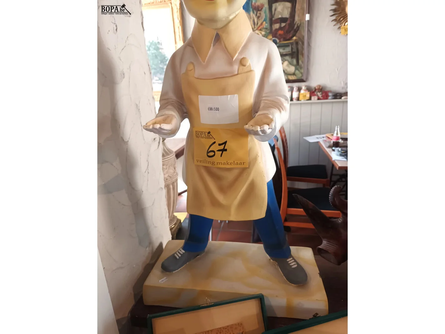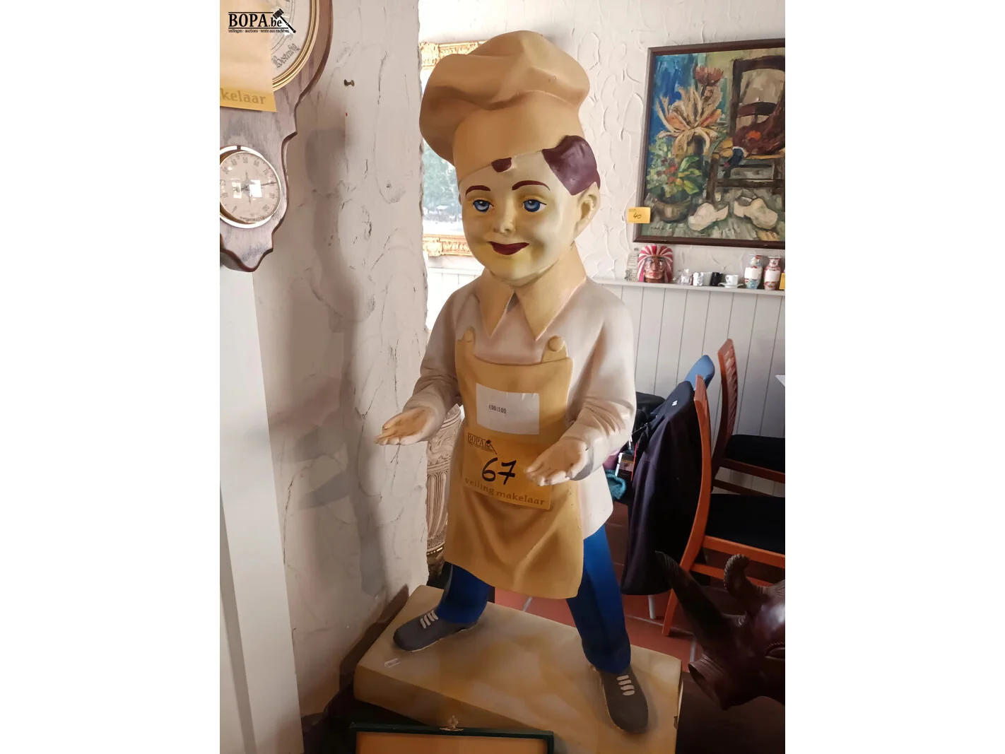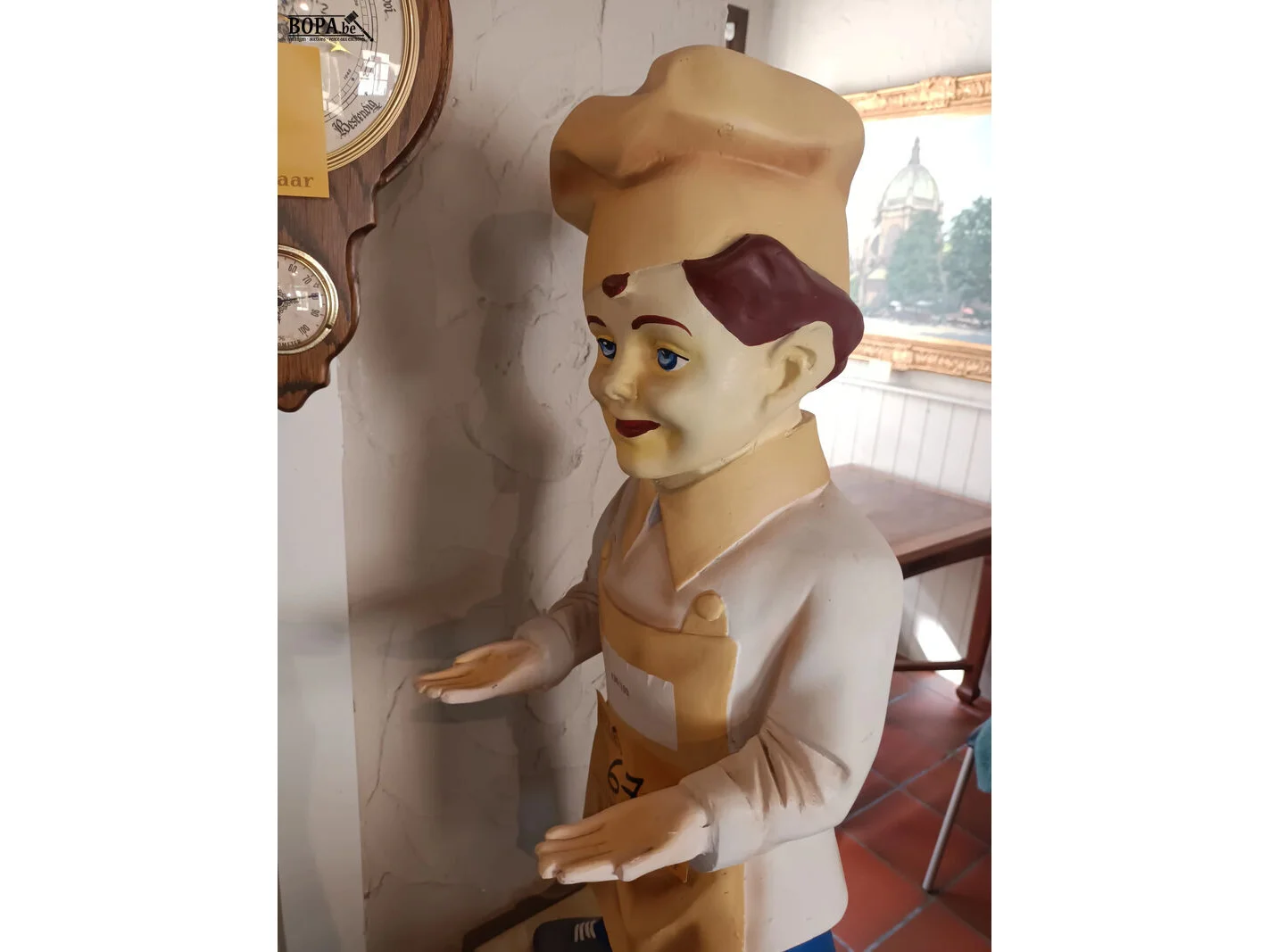 Beeld van een kok om een dienblad op te zetten. Hoogte 78 cm.