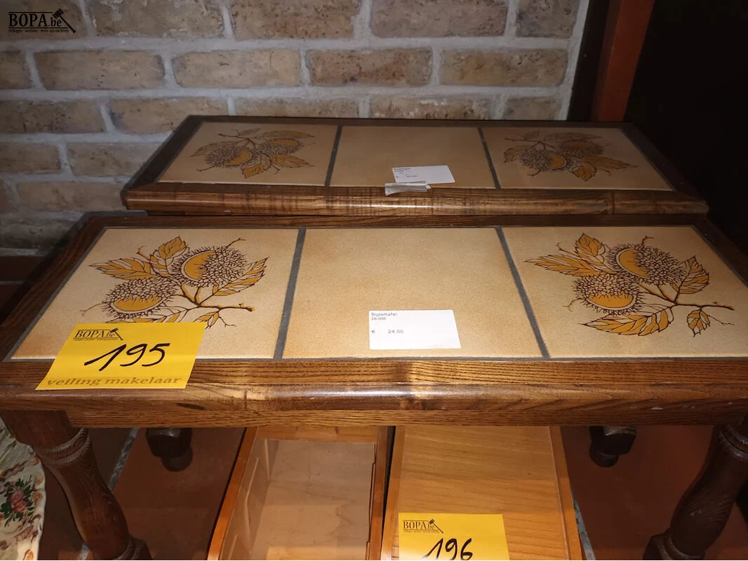 Lot 195 - bijzettafel met tegels. 2 stuks