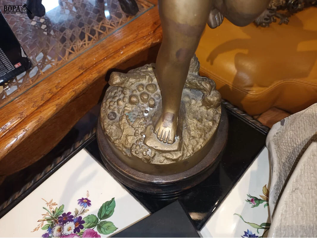 Koperen putti Aug. Moreau. Hoogte 40 cm.