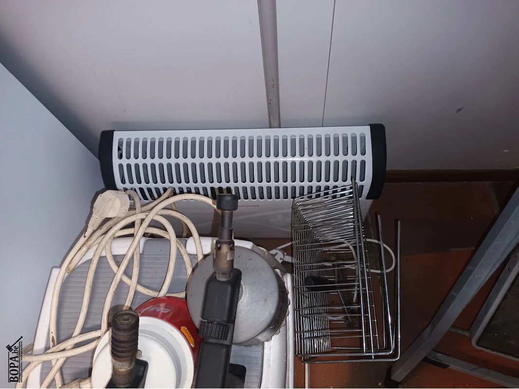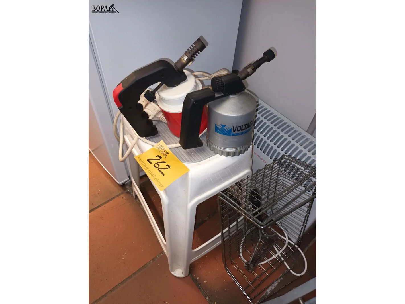 Opstapje, elektrische verwarming, verlengkabel, 2 branders, een een hangrekje.