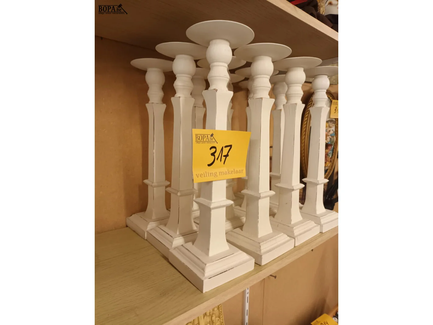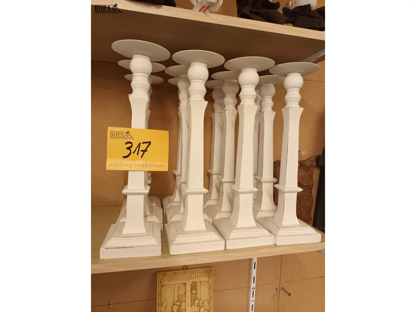 Houten kandelaars. 12 stuks. Hoogte 34 cm.