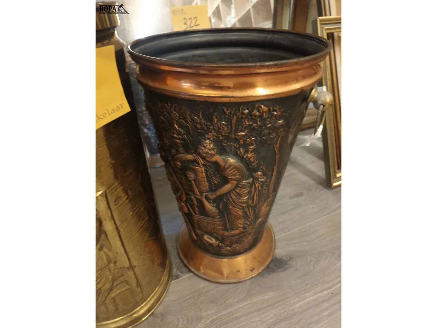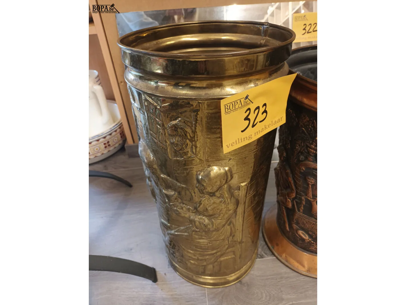 Koperen paraplubak. 2 stuks. Hoogte 50 cm.
