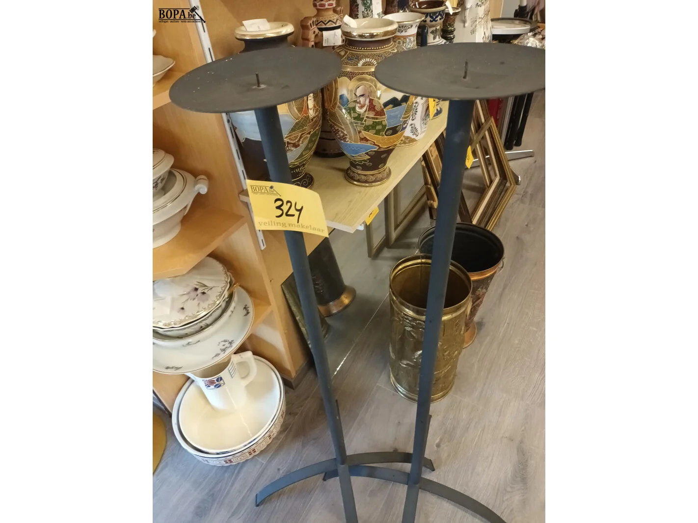 Lot 324 - metalen kaarsenstandaard. 2 stuks