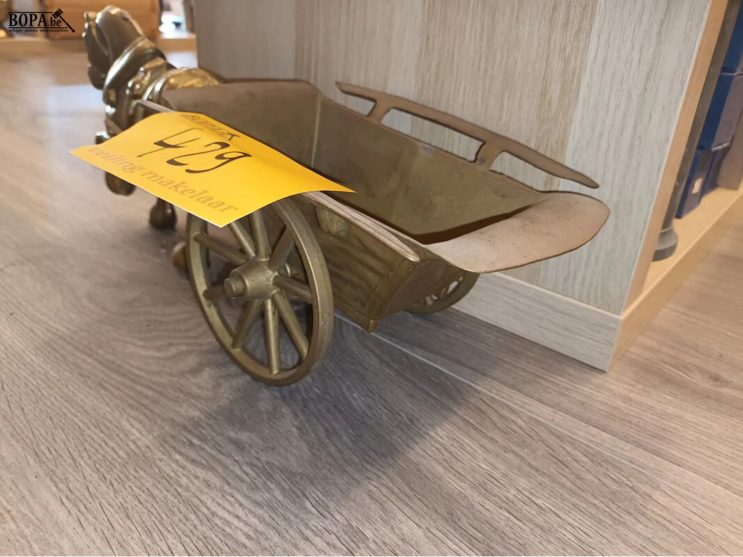 Koperen paard met kar.