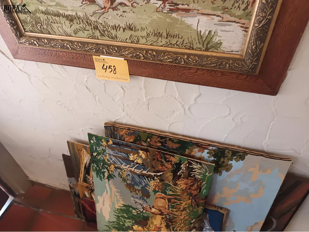 Lot 458 - kunstwerk in borduurwerk. 8 stuks