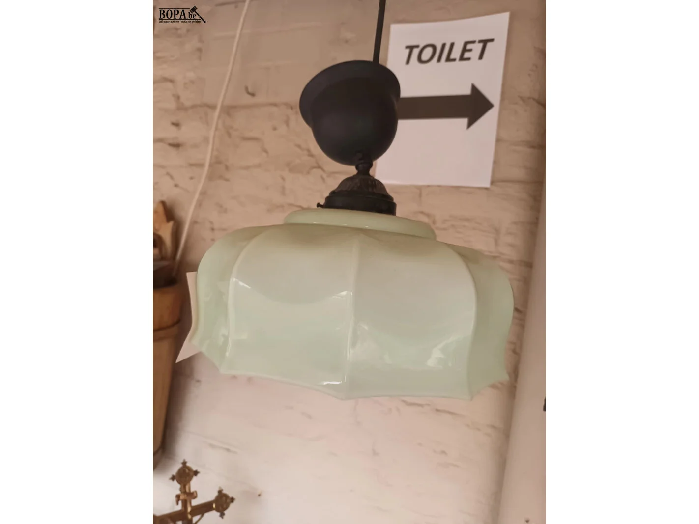 Hanglamp met opaline lampenkap. Diameter 26 cm.