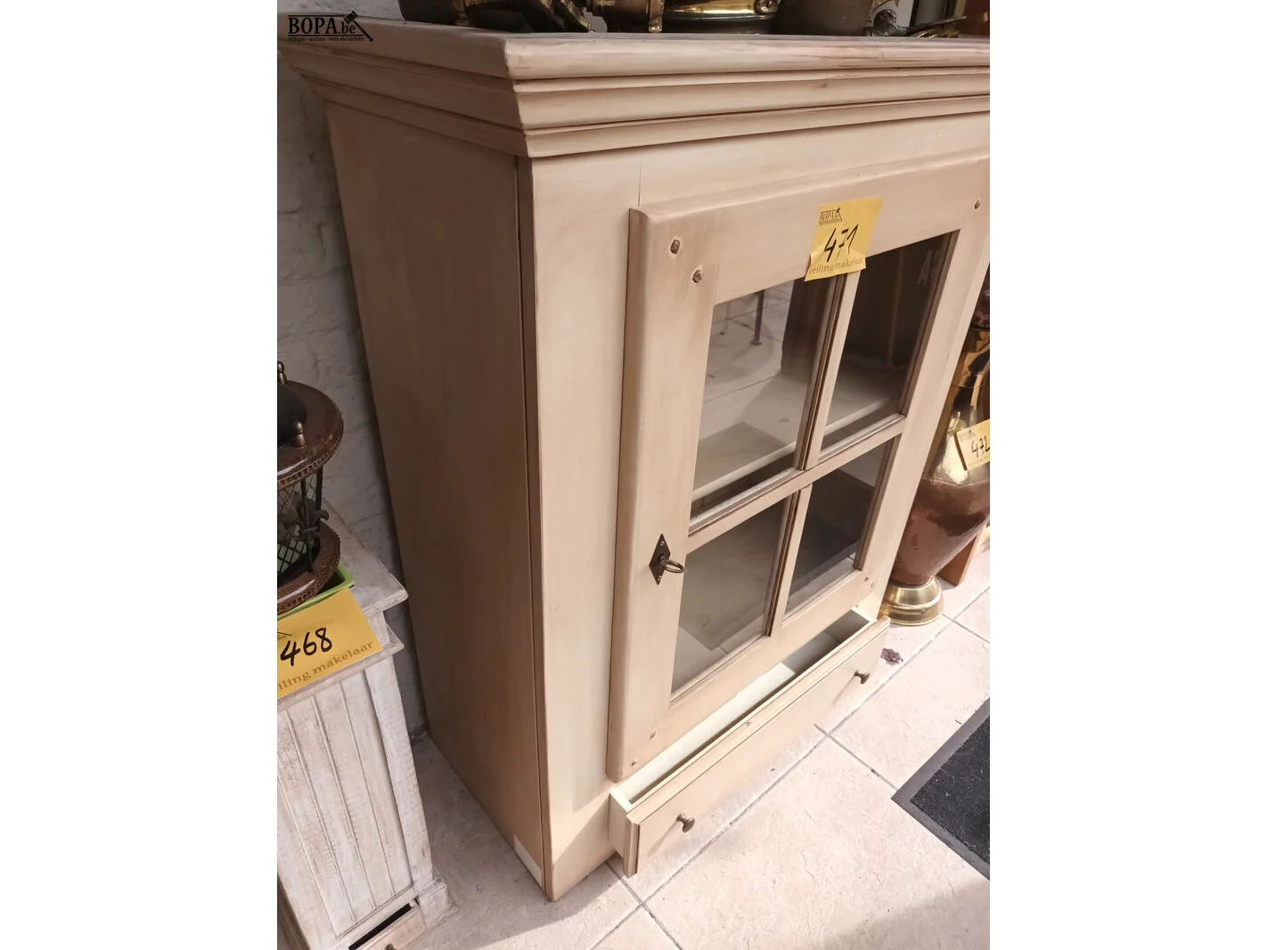 Kast met vitrine deur en 1 lade. 90 x 42 x 108 cm.
