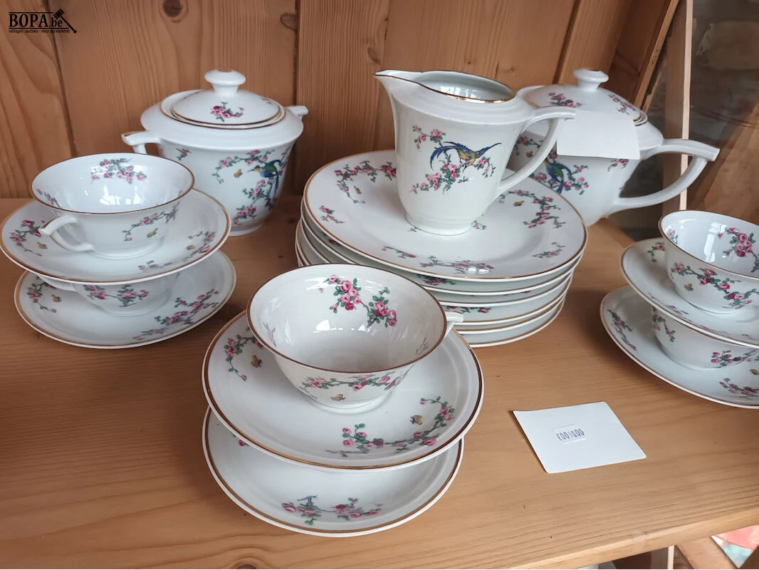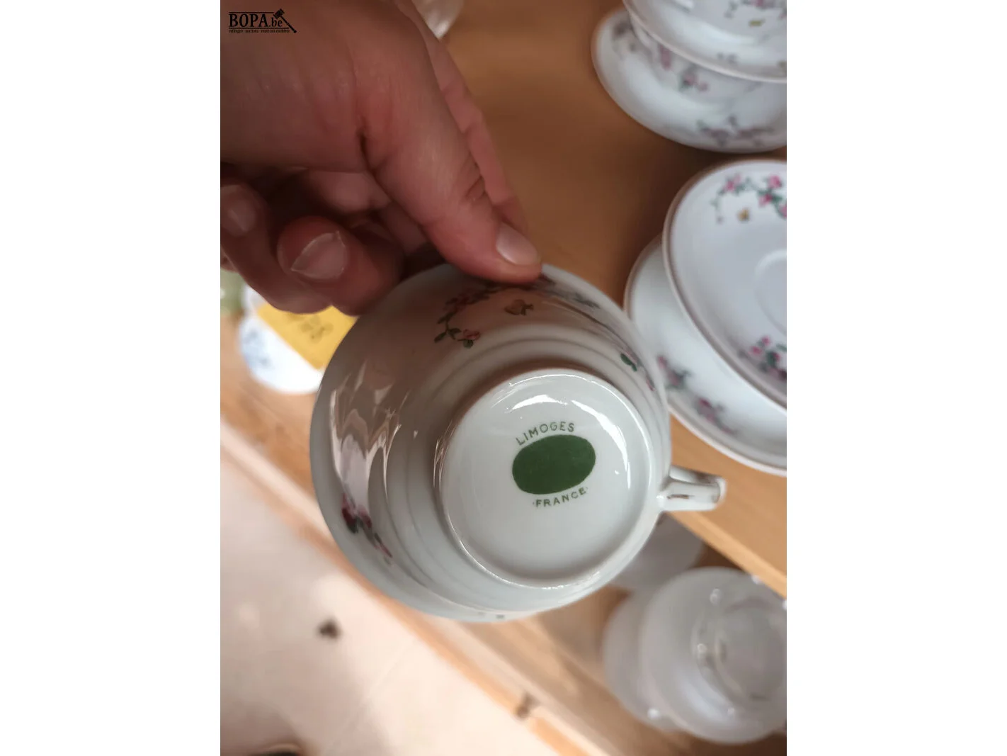 Vintage huisraad. 30 stuks. Limoges koffieservies, wijnglazen champagne glazen.