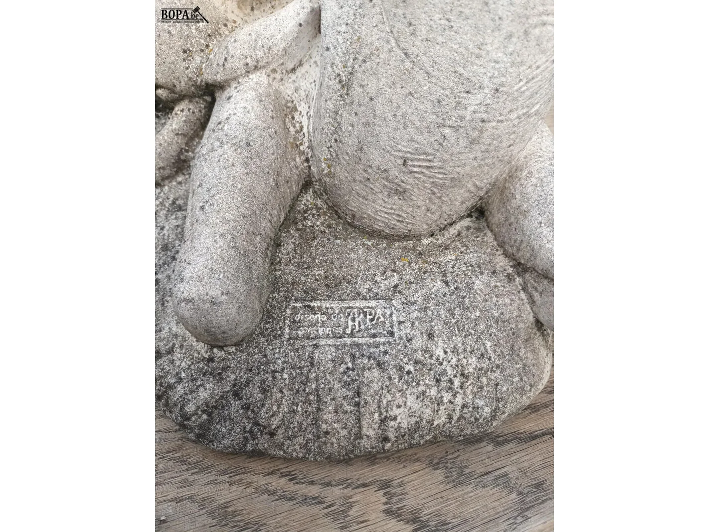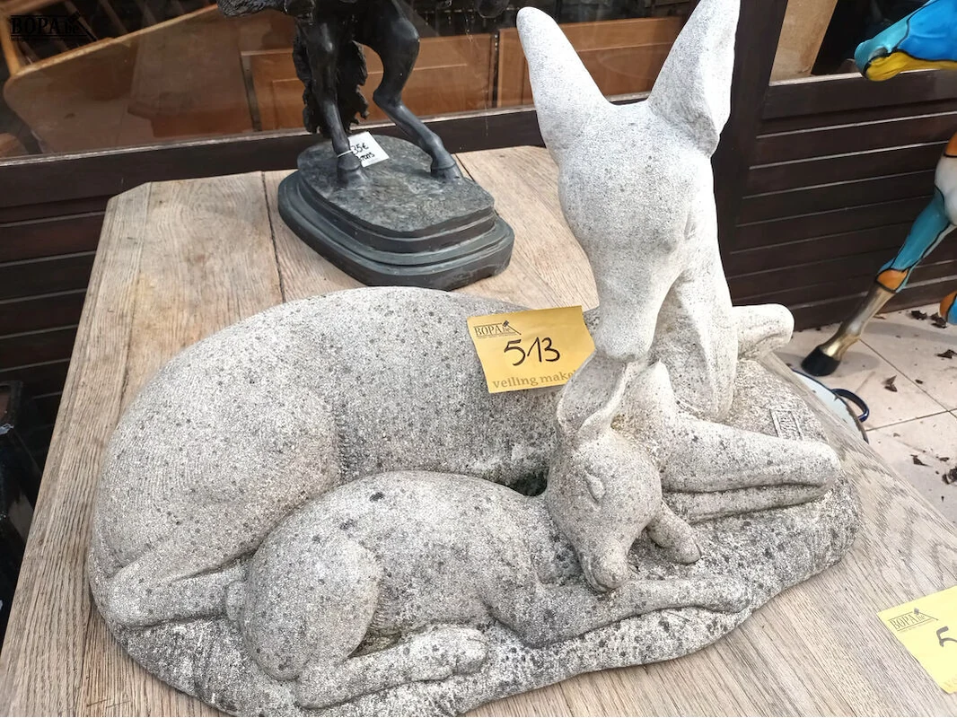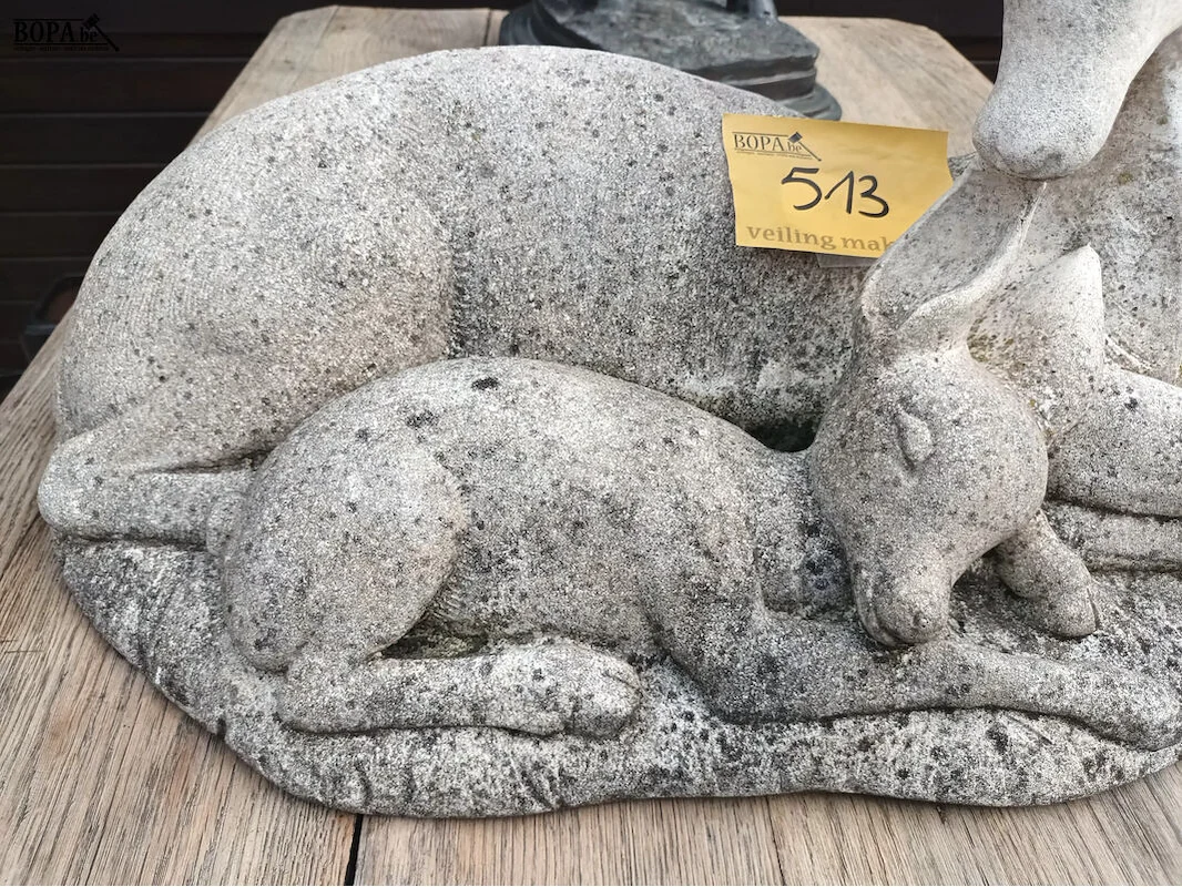 Betonnen tuinbeeld van hert met jong. 67 x 35 x 45 cm. Met stempel.