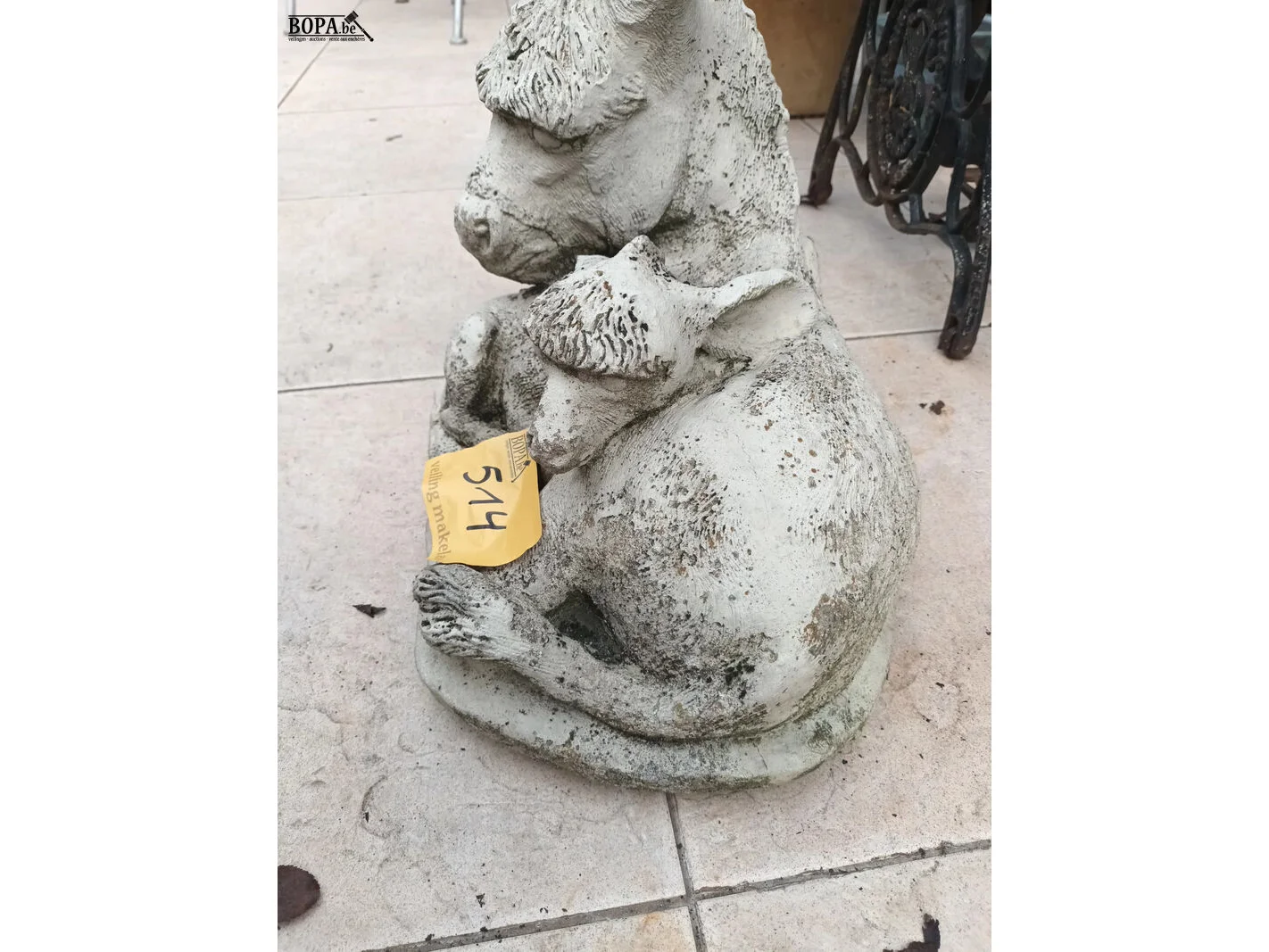 Betonnen tuinbeeld van ezel met jong. 43 x 33 x 41 cm.