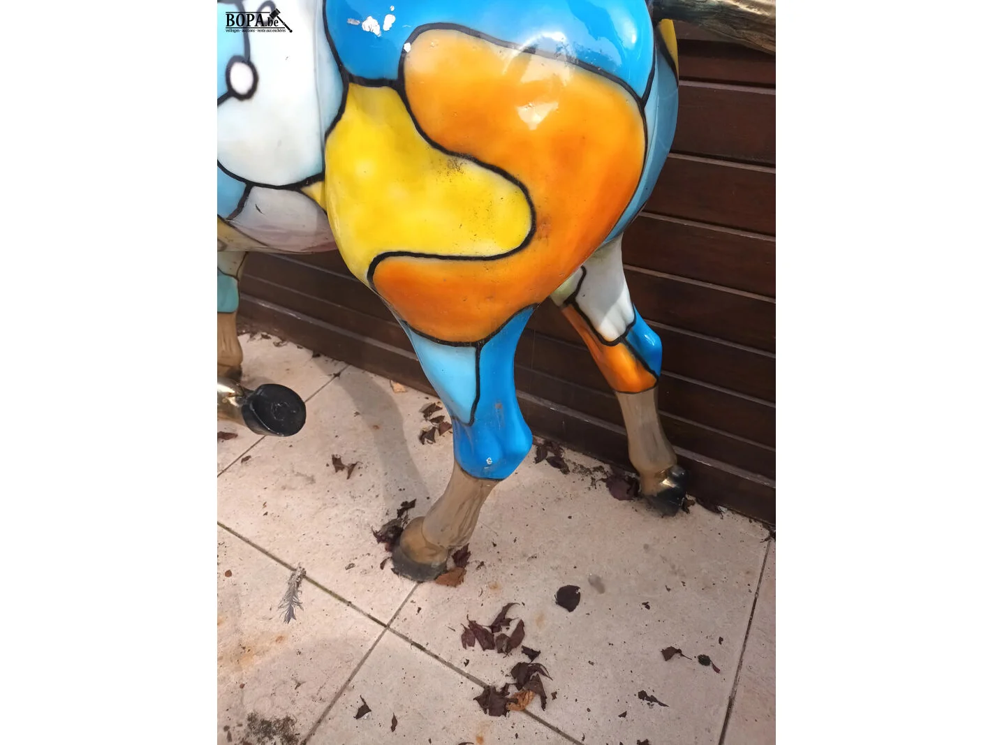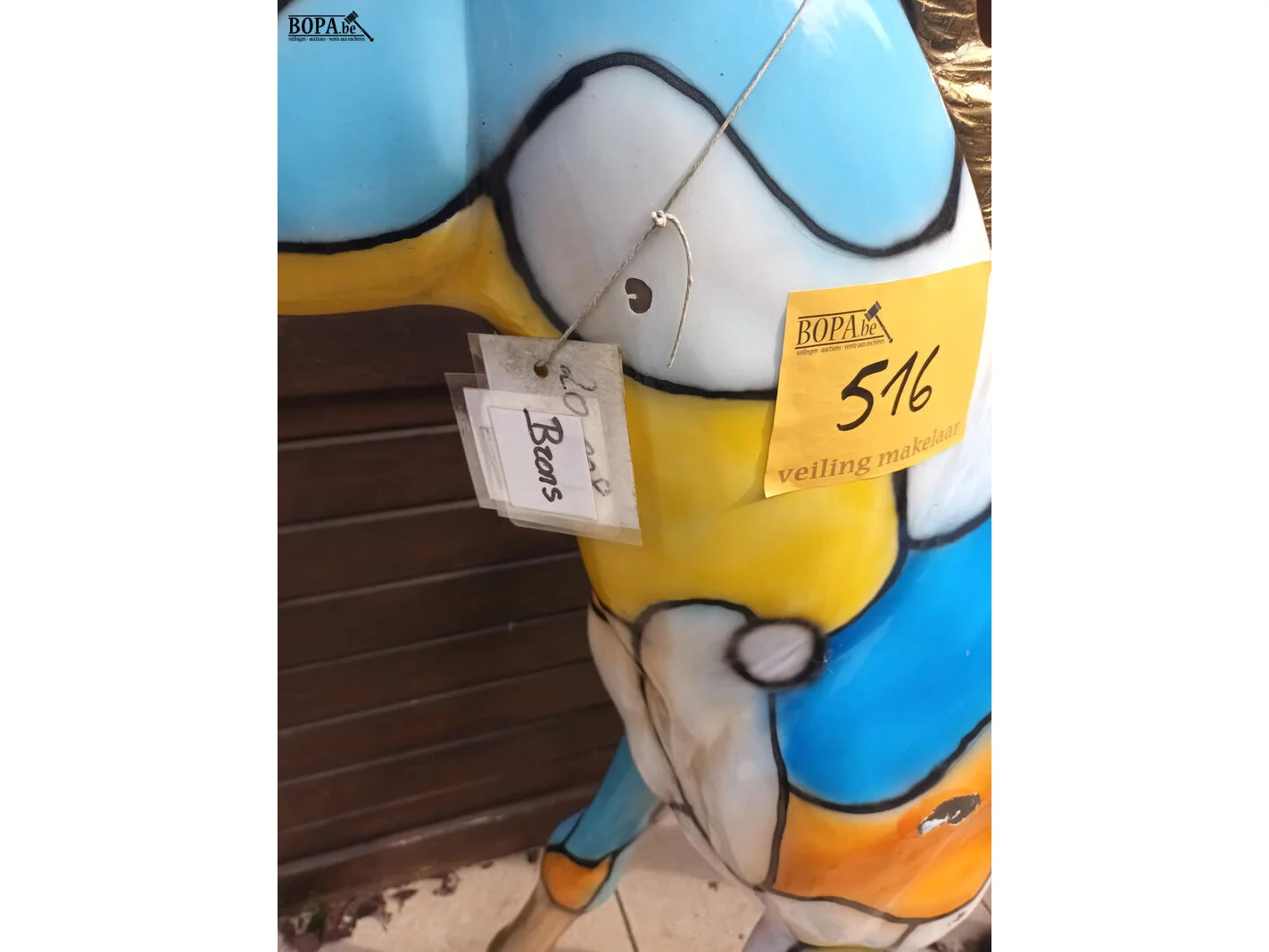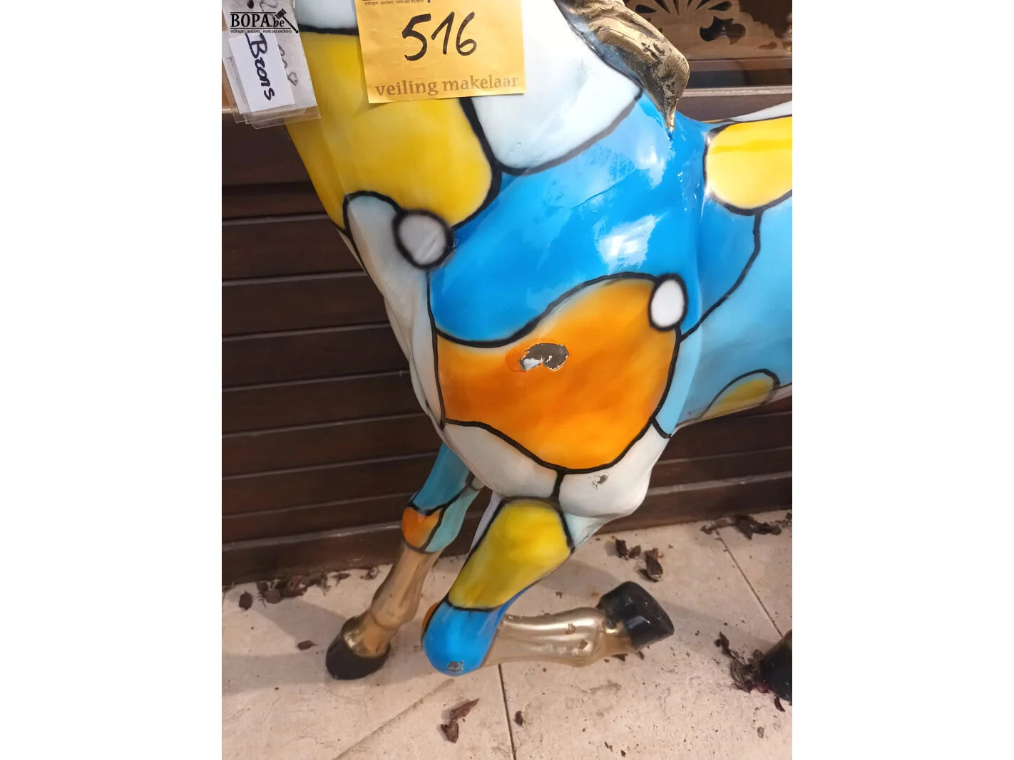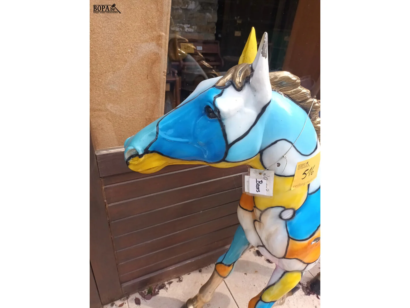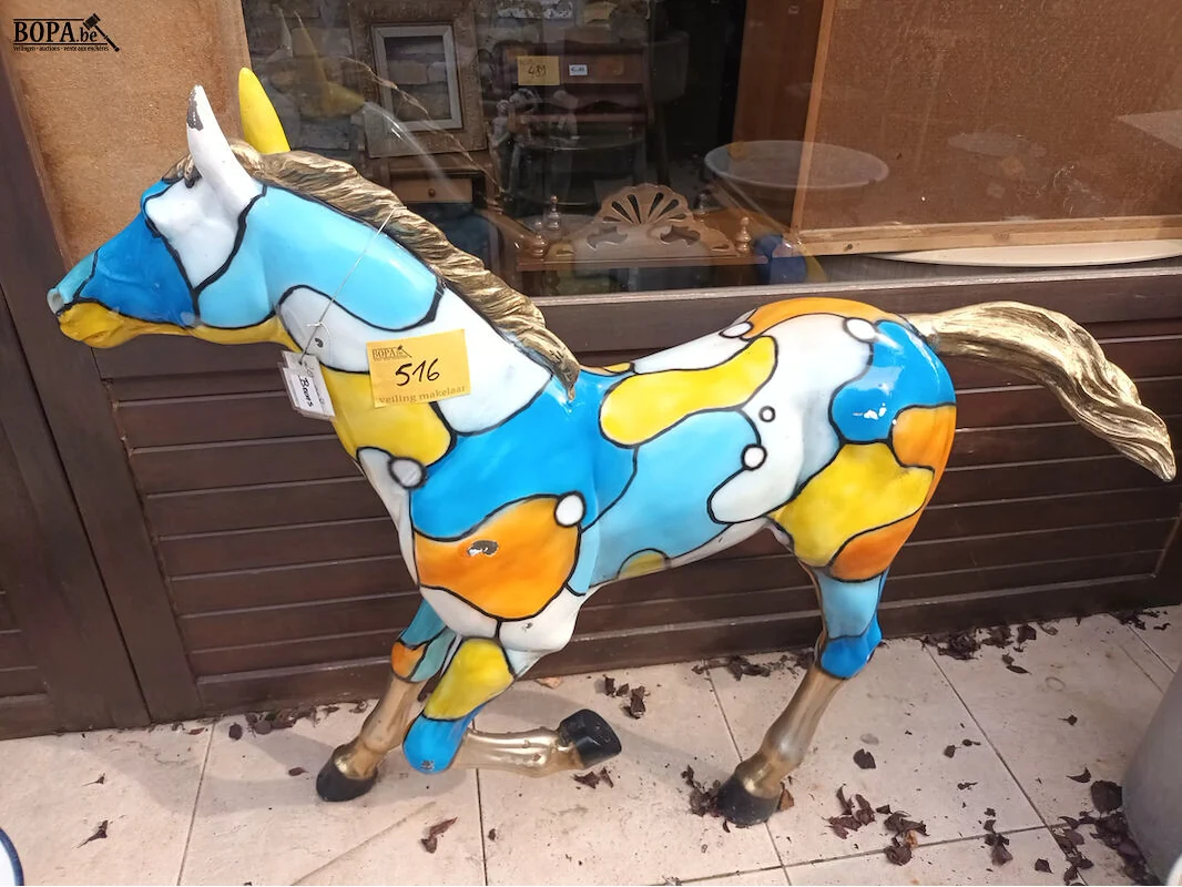 Bronzen geëmailleerd paard. 140 x 34 x 112 cm.