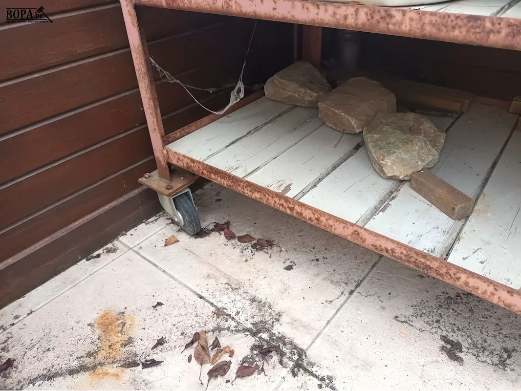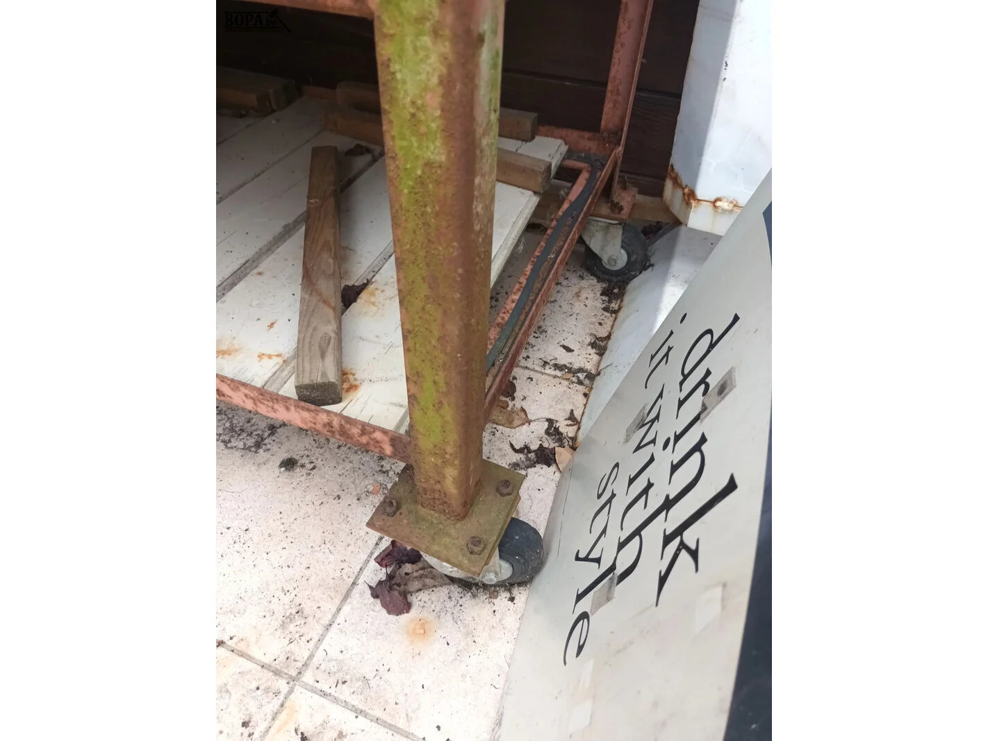 Metalen rek op wielen. 106 x 65 x 178 cm.