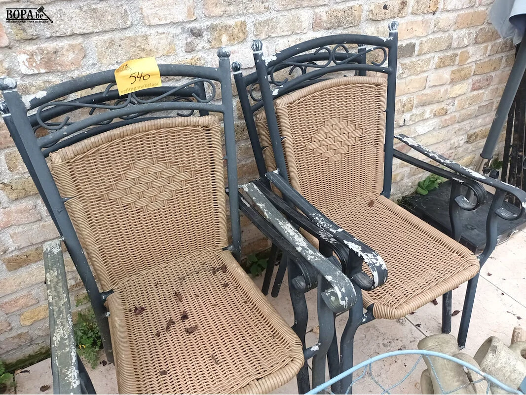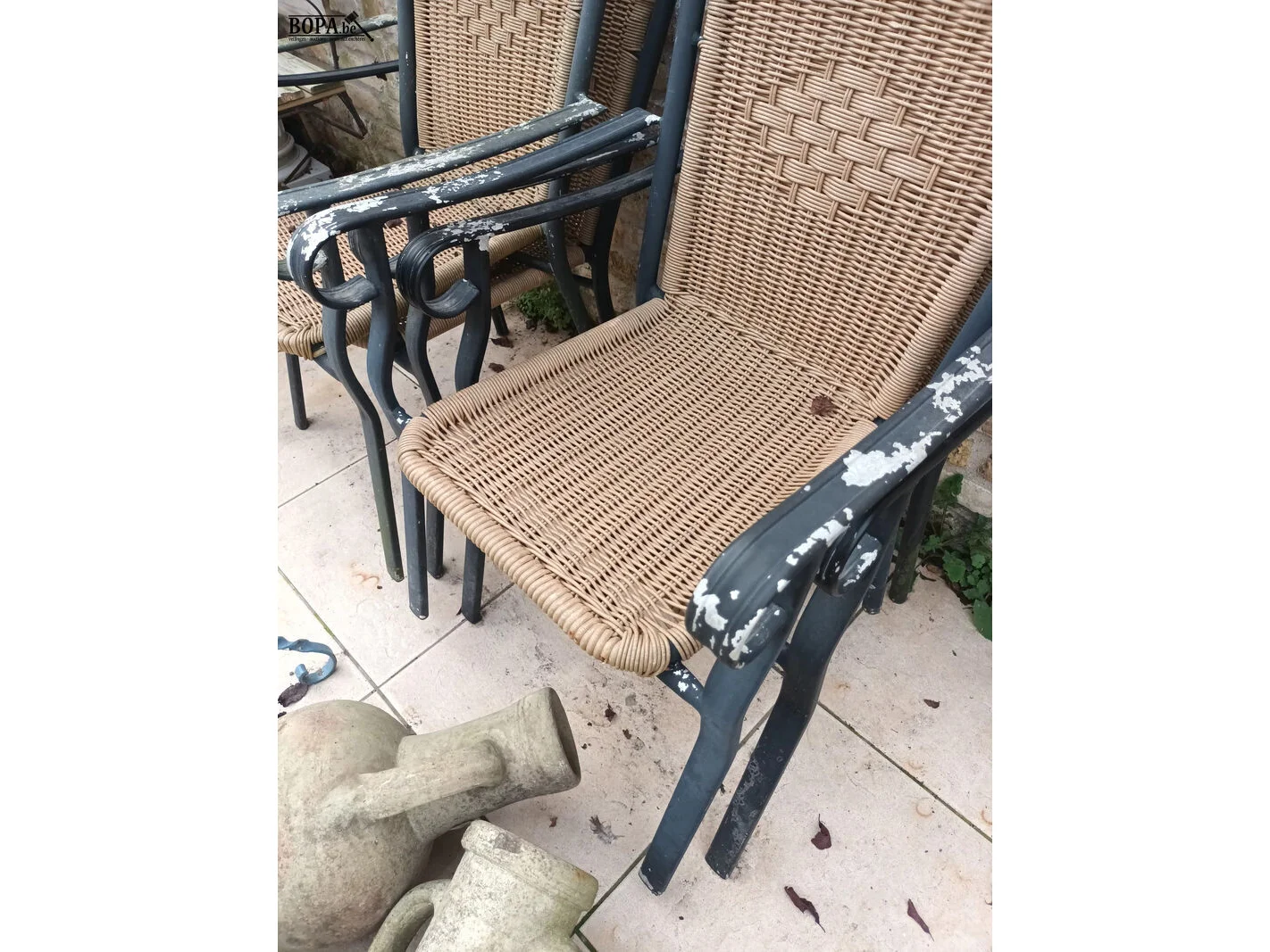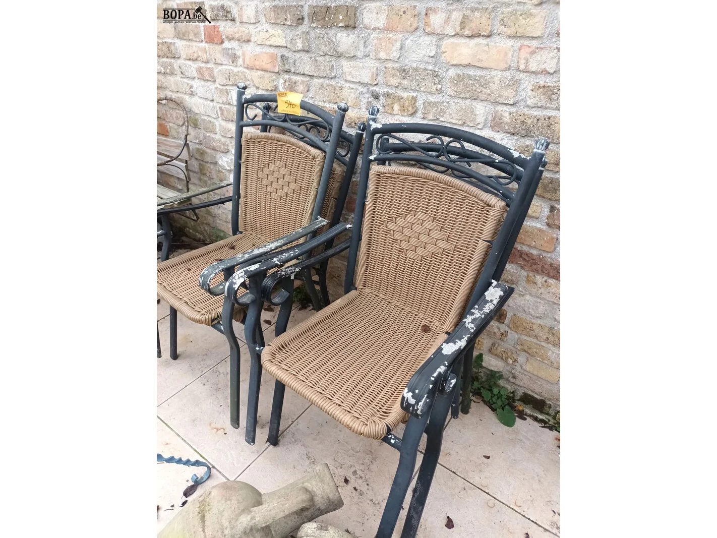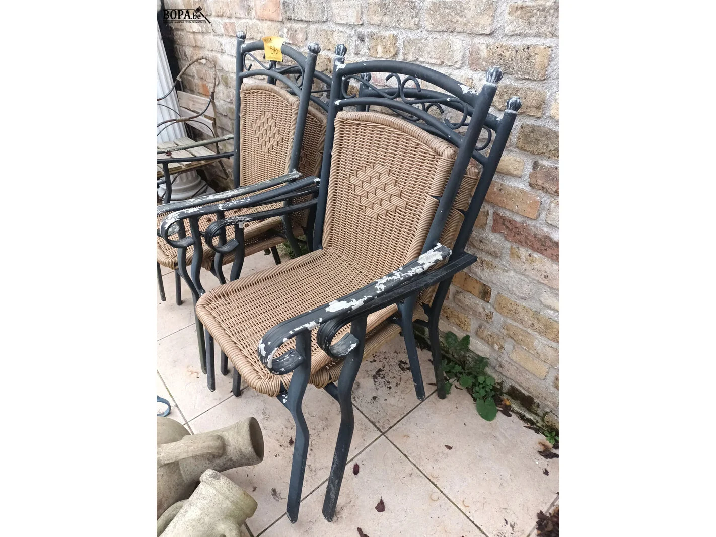 4 metalen tuinstoelen met geweven zitting. 57 x 52 x 95 cm.