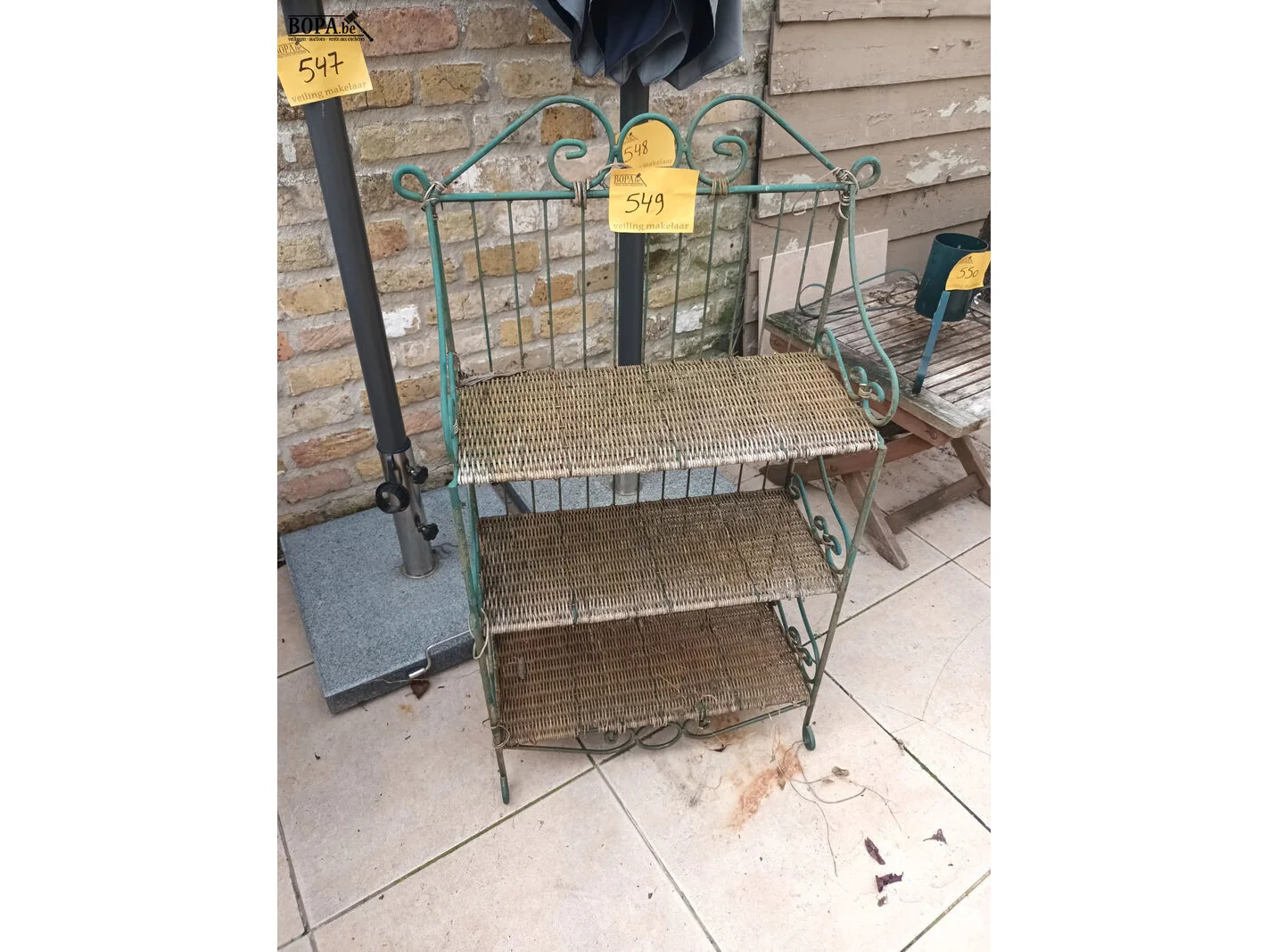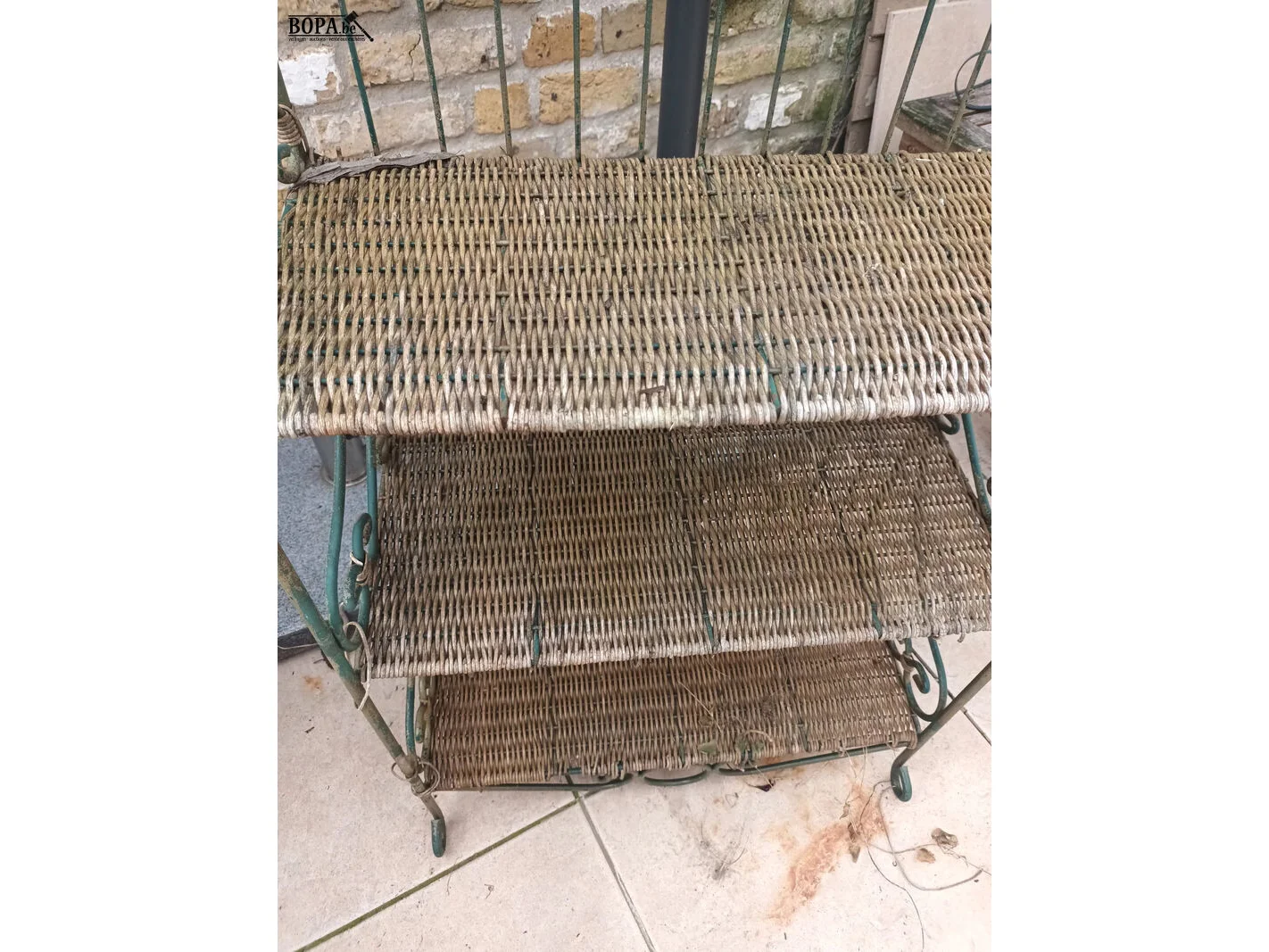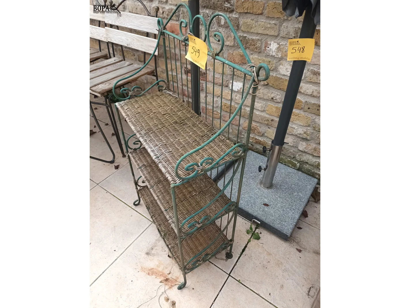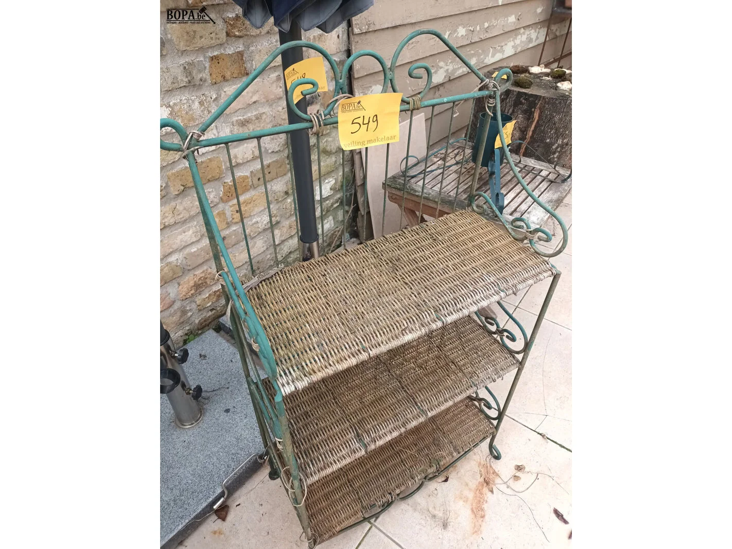 Plantenrek in smeedijzer en riet. 51 x 23 x 92 cm.