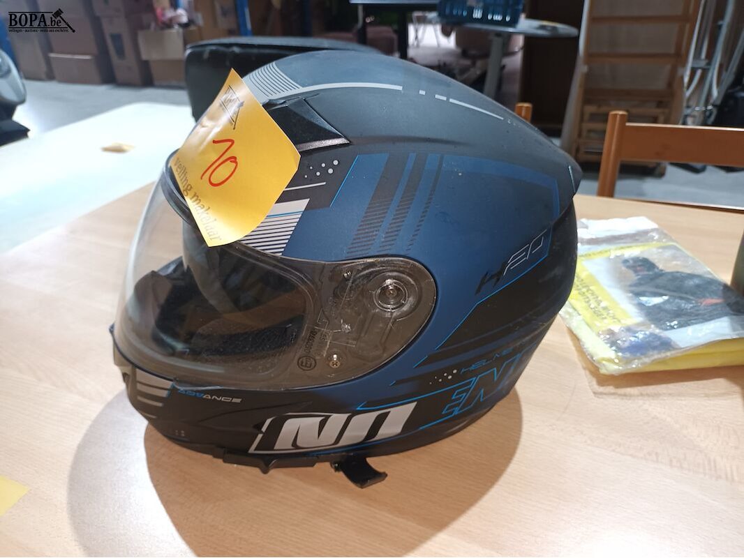 Lot 10 - motorhelm, regenpak en olie. 4 stuks
