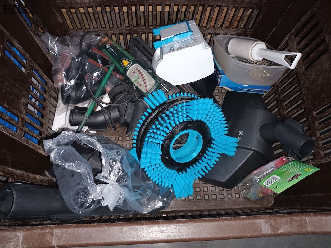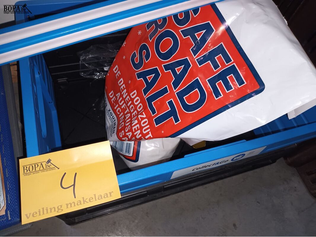Lot diversen zoals 2 verhuiskarretjes, onderdelen van stofzuigers, een aangebroken zak strooizout, etc.