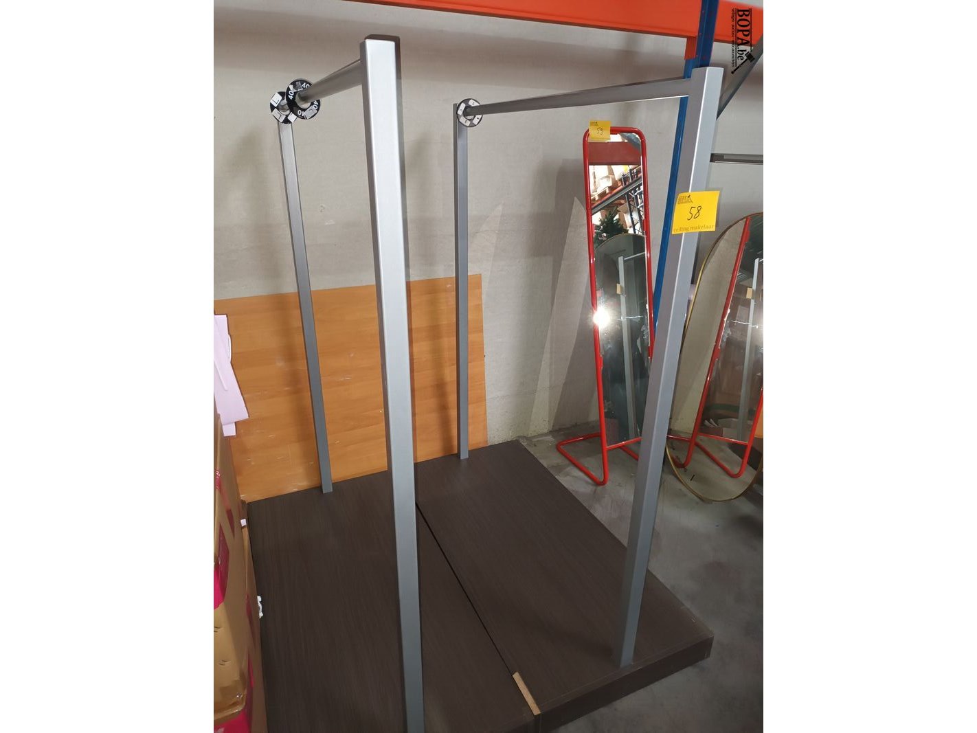 Kledingrek op houten basis. 2 stuks. 124 x 60 x 155 cm.