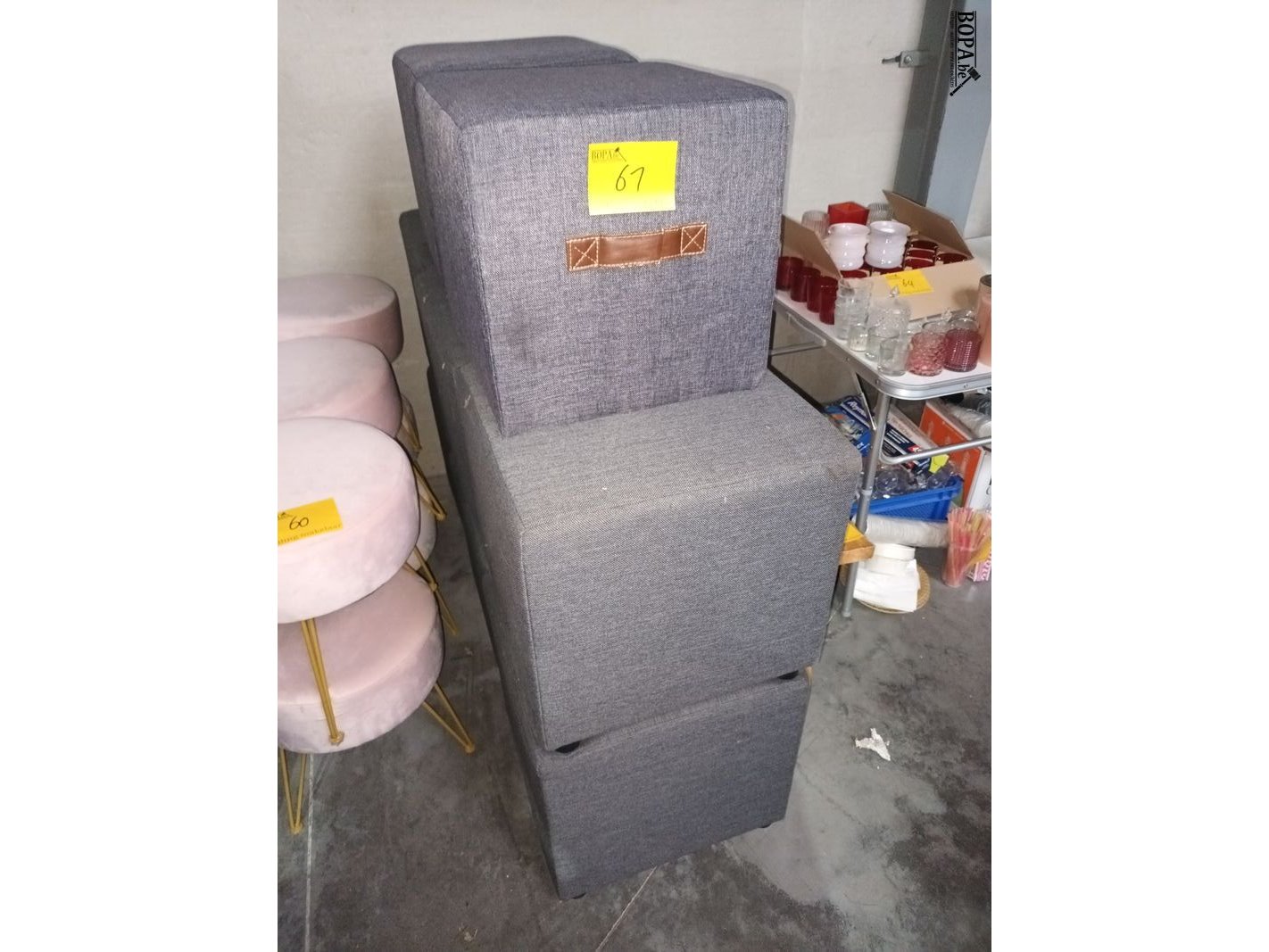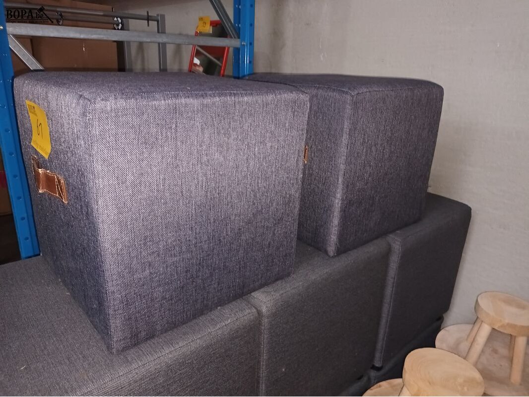 2 stoffen zitkubussen van 40 x 40 x 40 cm en 6 stoffen zitkubussen van 46 x 46 x 46 cm.