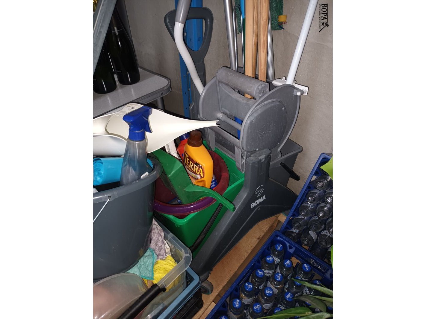 Lot poetsmateriaal waaronder een Boma poetswagen.