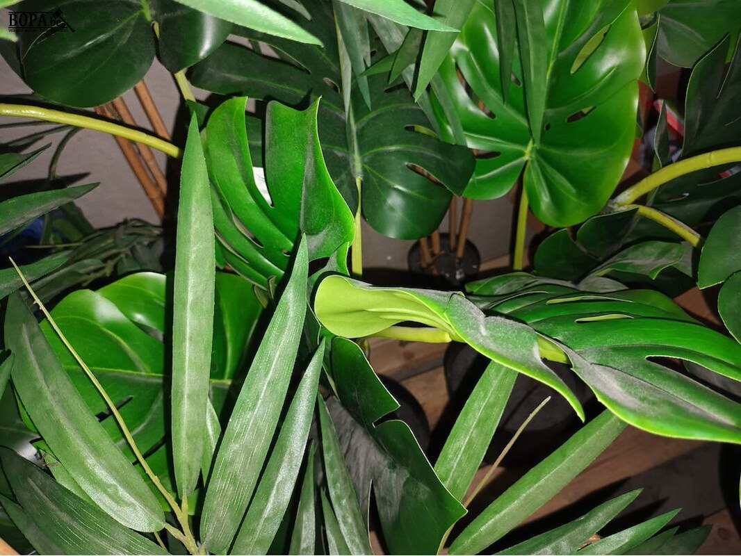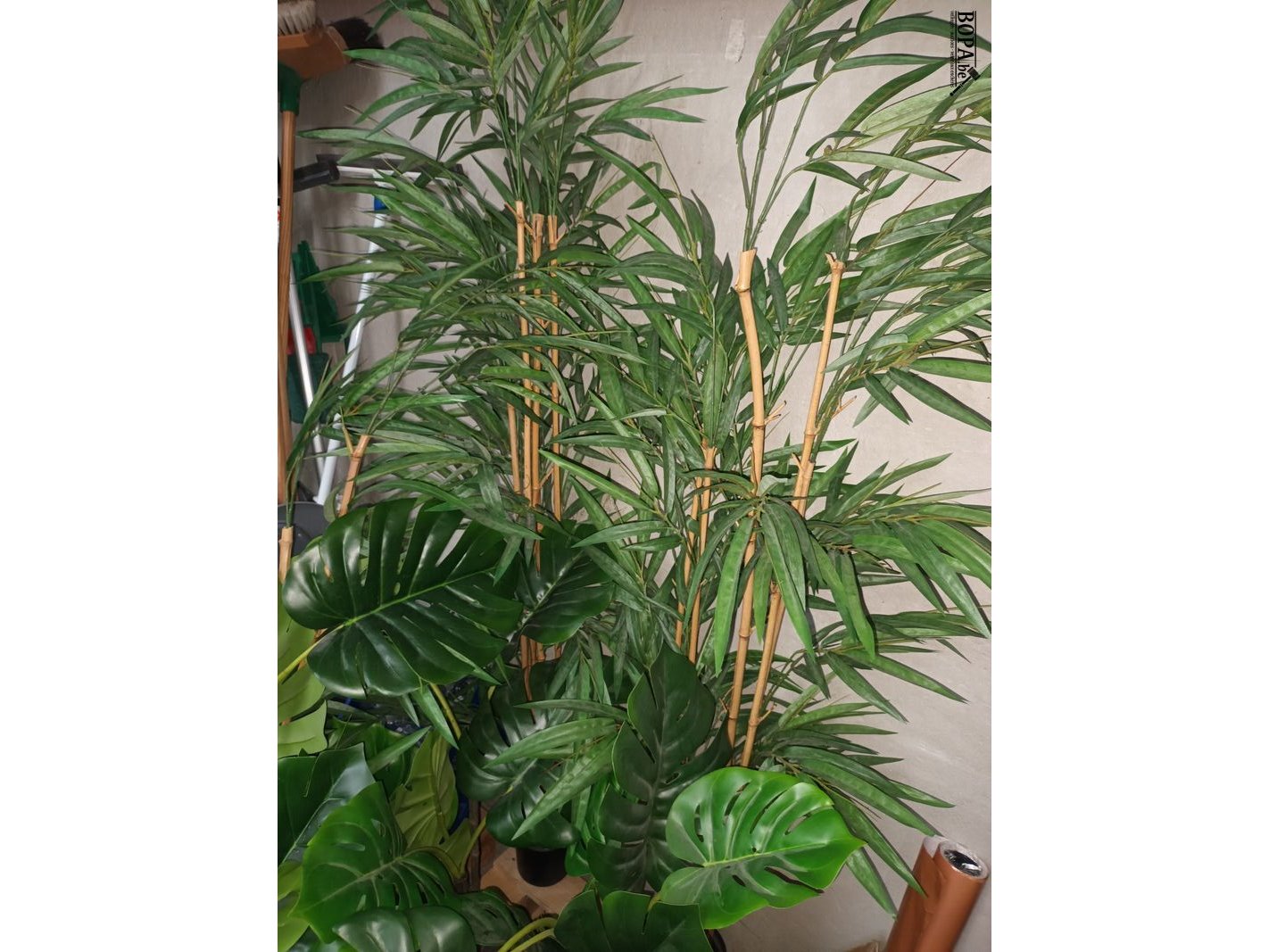 2 vuilnisbakken, 5 grote kunstplanten en een tiental kleine kunstplantjes.