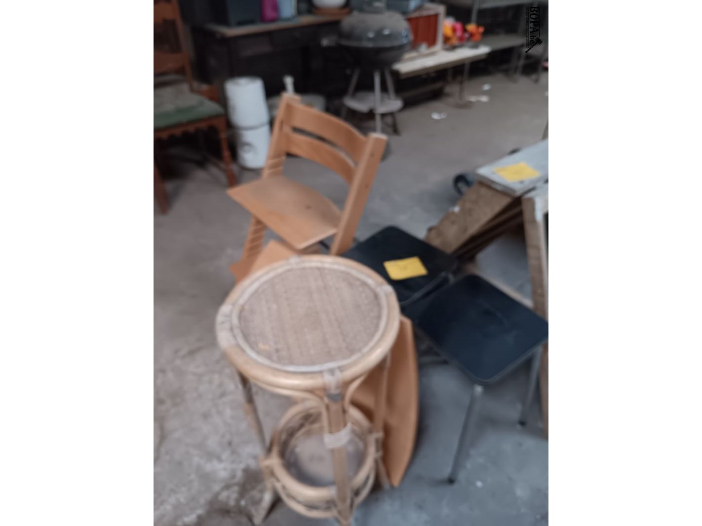 Krukjes, triptrap kinderstoel, plantentafel en draaiplateau voor tv.