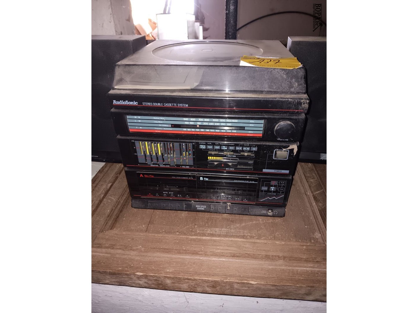 Stereoketen Audiosonic met dubbele cassettespeler. Werking onbekend.