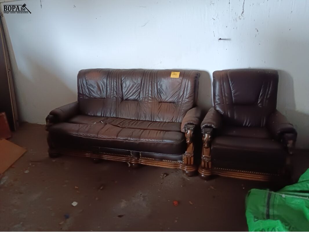 Salon bestaande uit een 3-zit een een 1-zit. Met zichtbare schade.