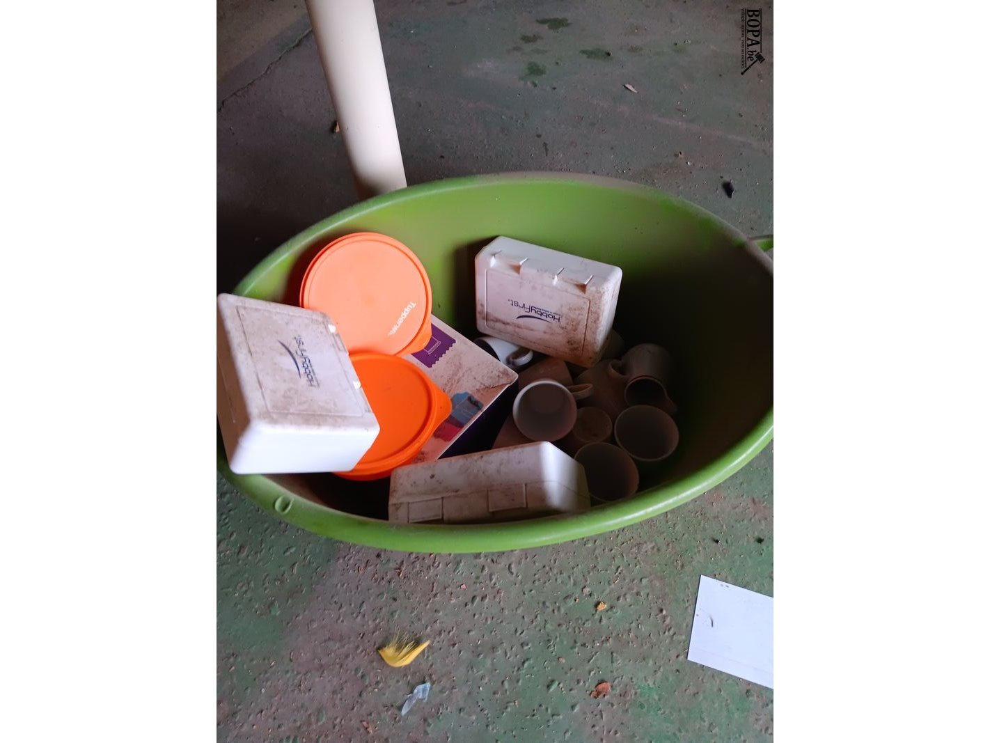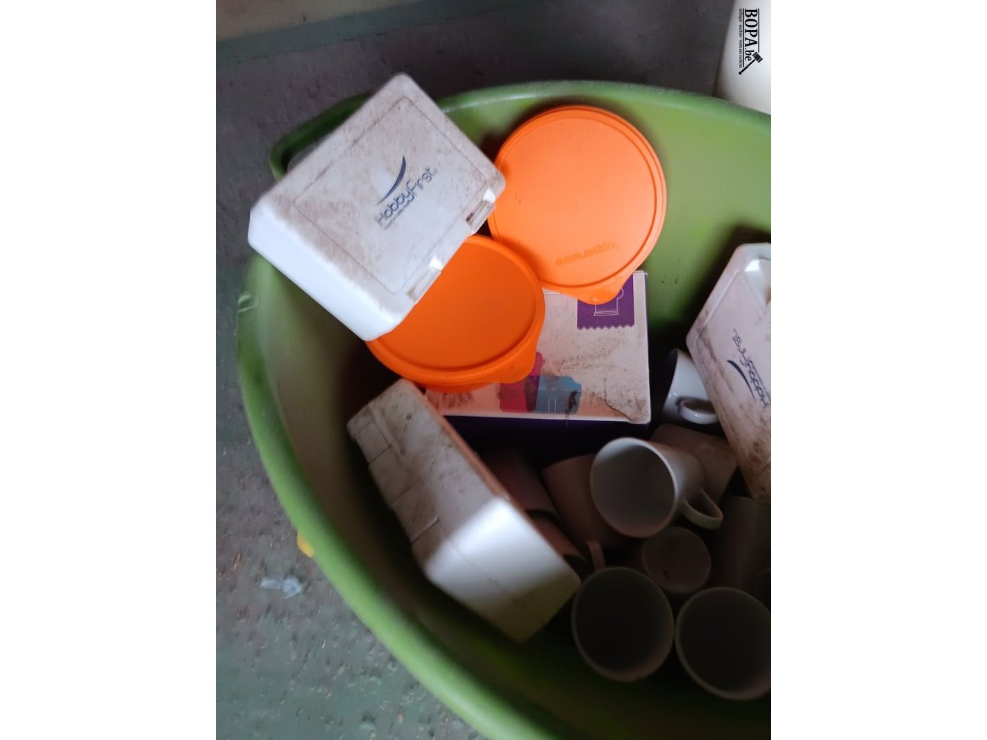 Poetsmateriaal en keukengerei.