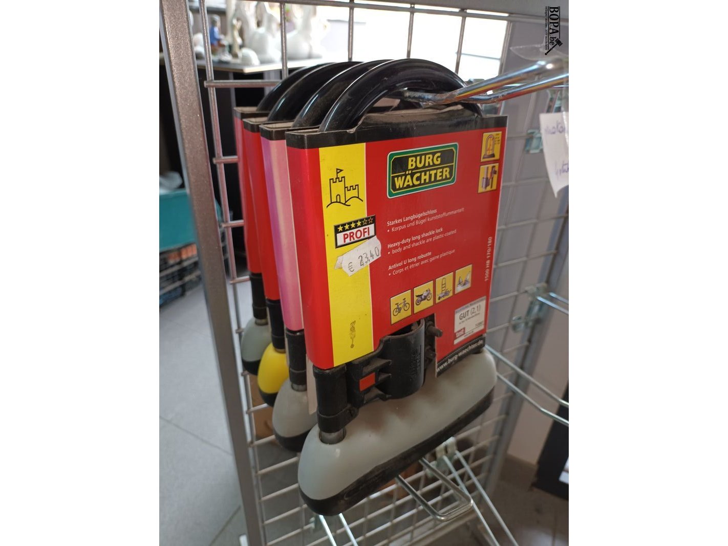 Metalen rekje met 4 motorhangsloten Burg Wächter.