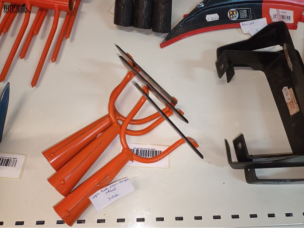 Divers tuingereedschap. 25 stuks. Preiplanter, 3 harken met 10 tanden, 8 harken, 3 hakken met drietand, 6 hakken, 2 schaafmessen, 2 zeisen.
