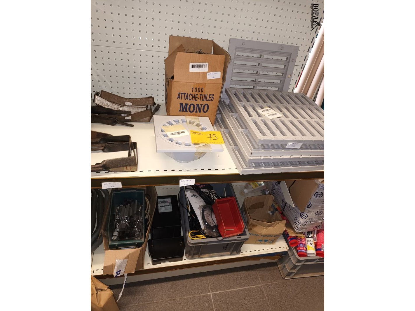 Diversen. Inhoud rek. Stortput, 5 putdeksels, 12 schaven, panhaken, kabels, montage materiaal, etc.