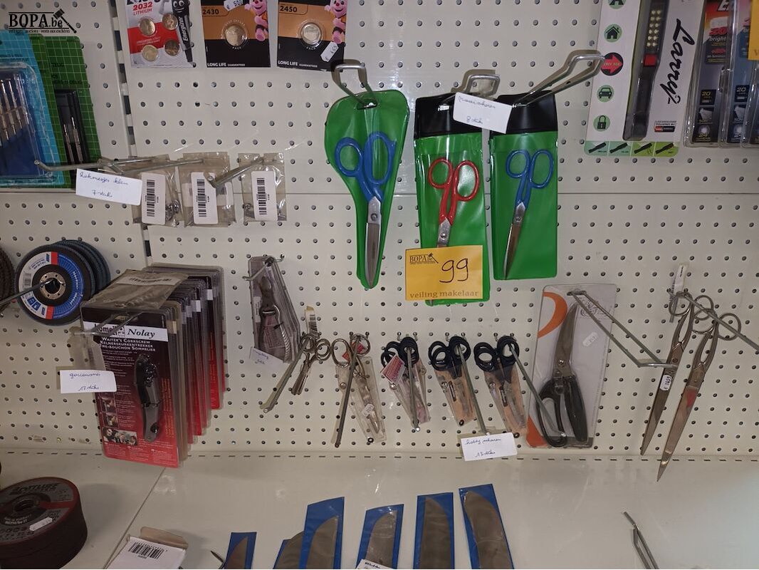 7 kleine zakmesjes, 8 naaischaren, 13 obermessen, 13 hobby scharen.