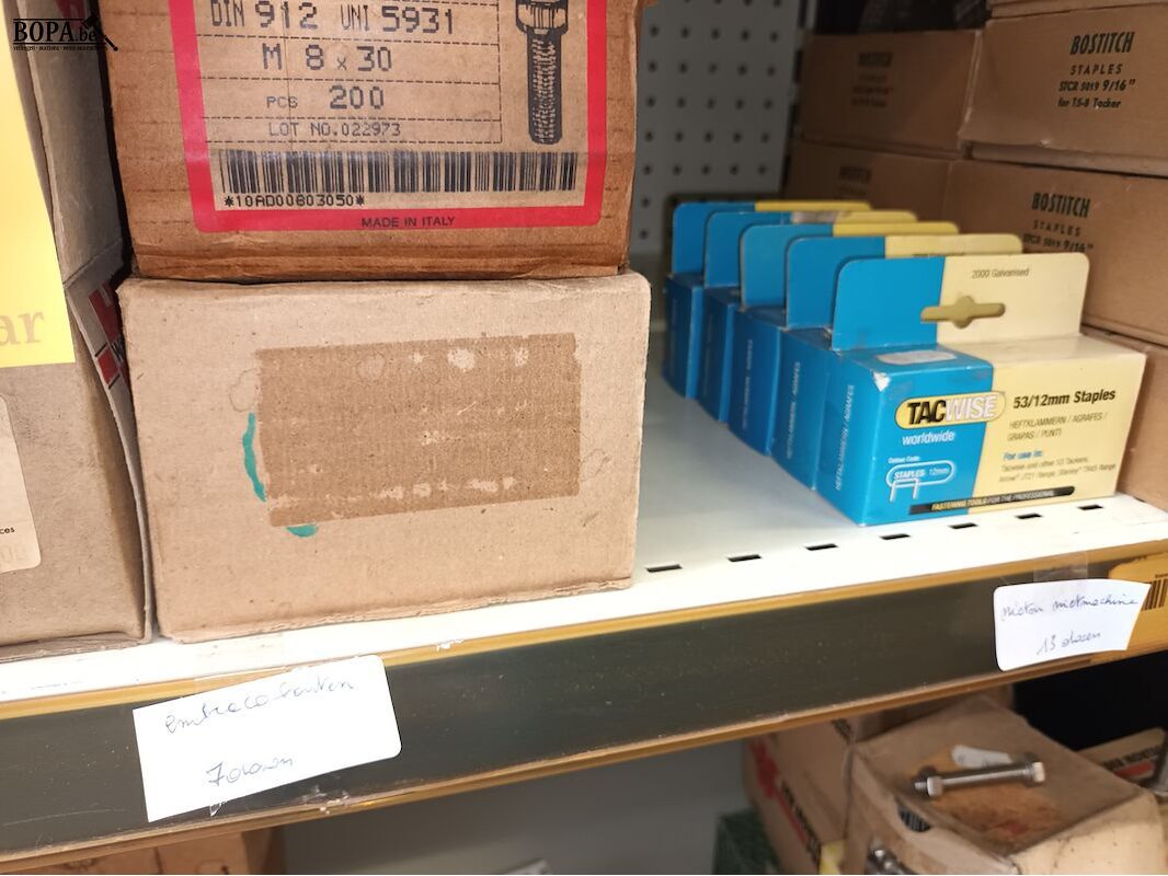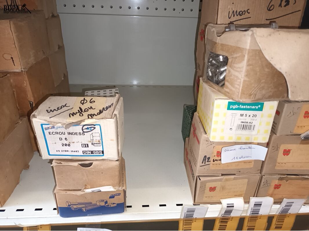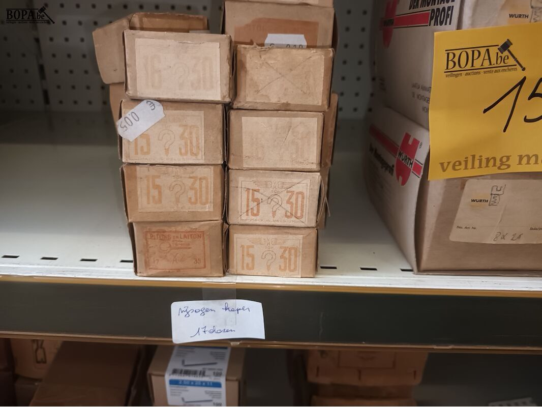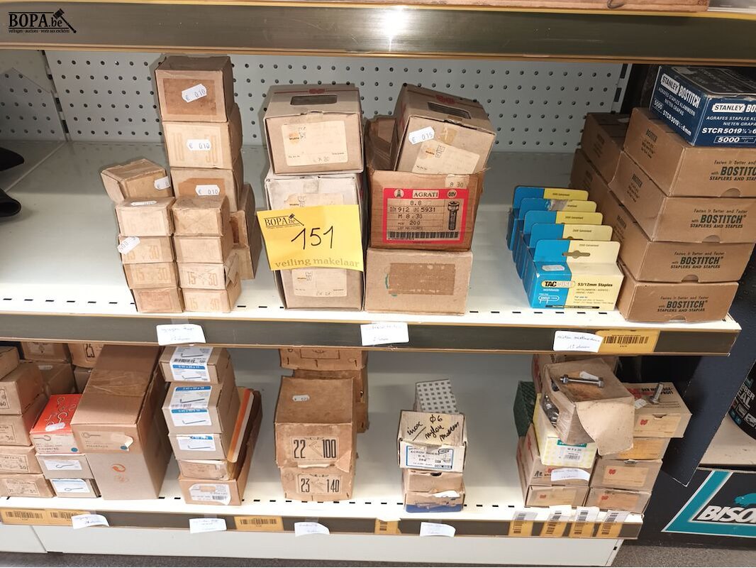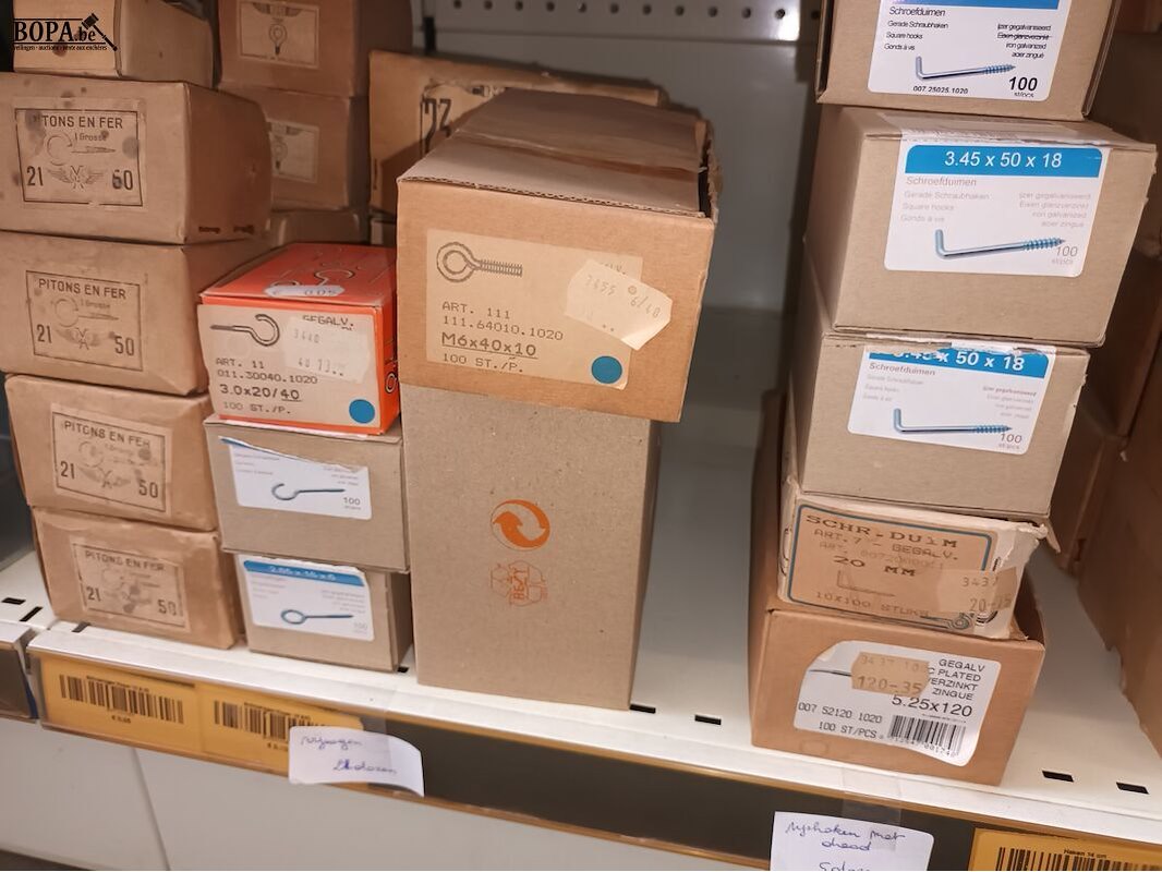 Groot lot bouten, moeren, vijsogen en haken. Ca. 75 doosjes.