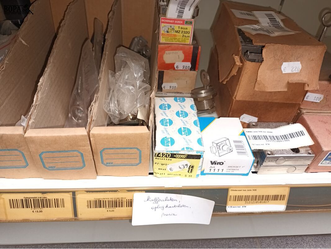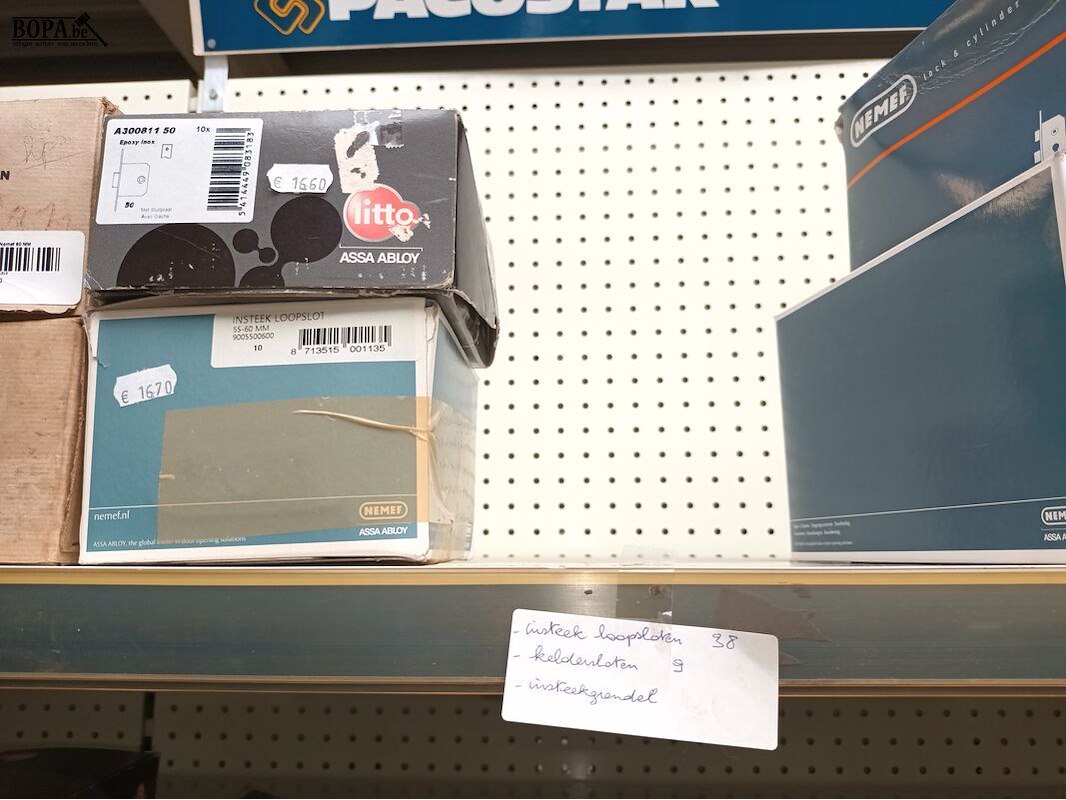 38 insteeksloten, 9 keldersloten, 54 cilindersloten, 10 x nachtslot cilinder, 2 paniek cilindersloten, 80 insteek kastsloten en 43 opleg kastsloten.
