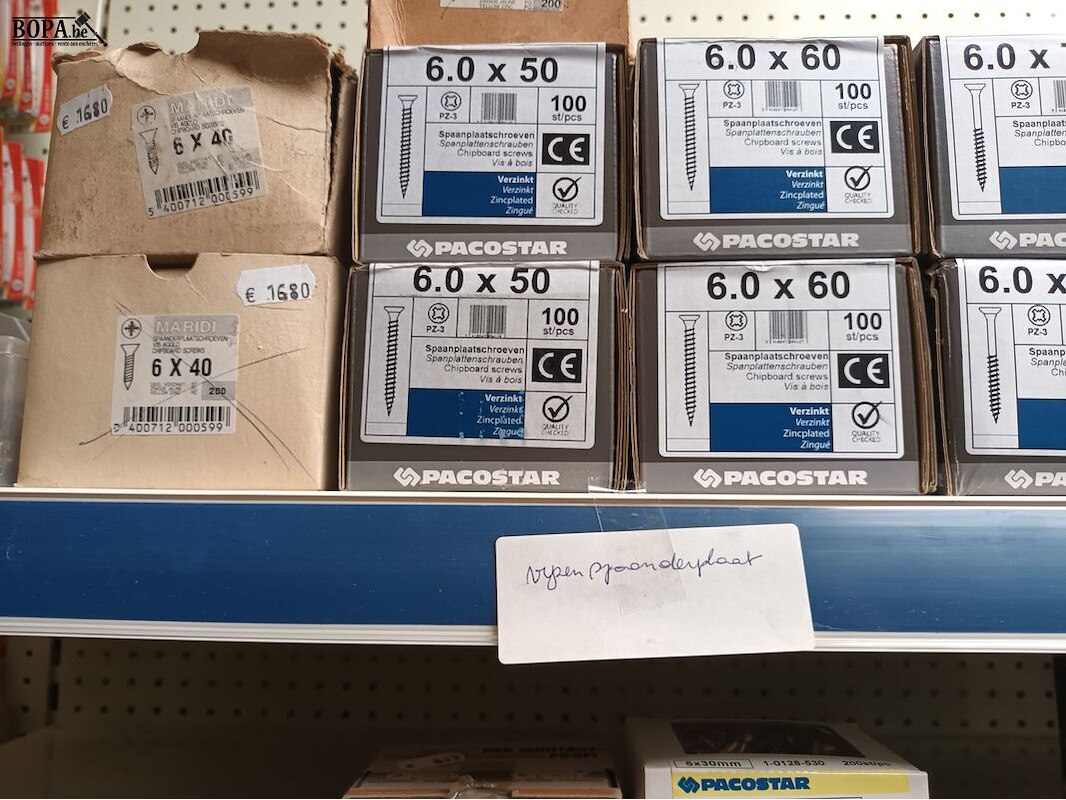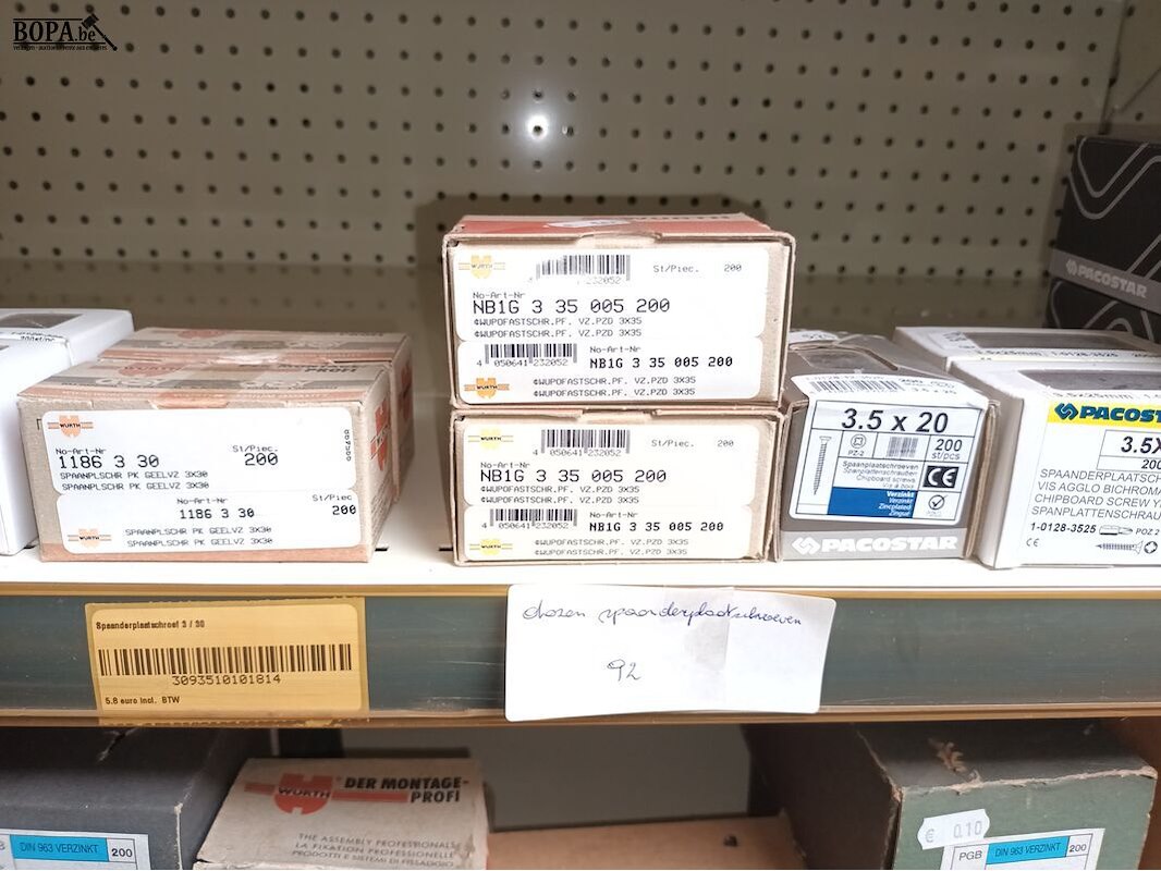 92 dozen spaanplaatschroeven, 27 dozen schroeven naar moer met conische kop, 17 dozen schroeven naar moer cilinder kop.