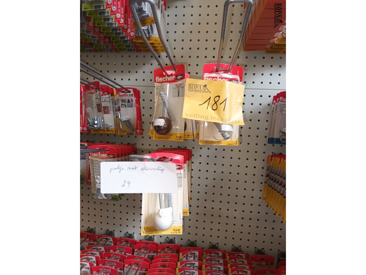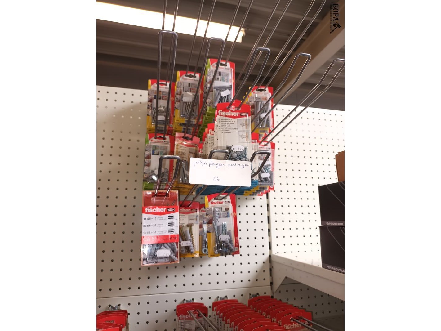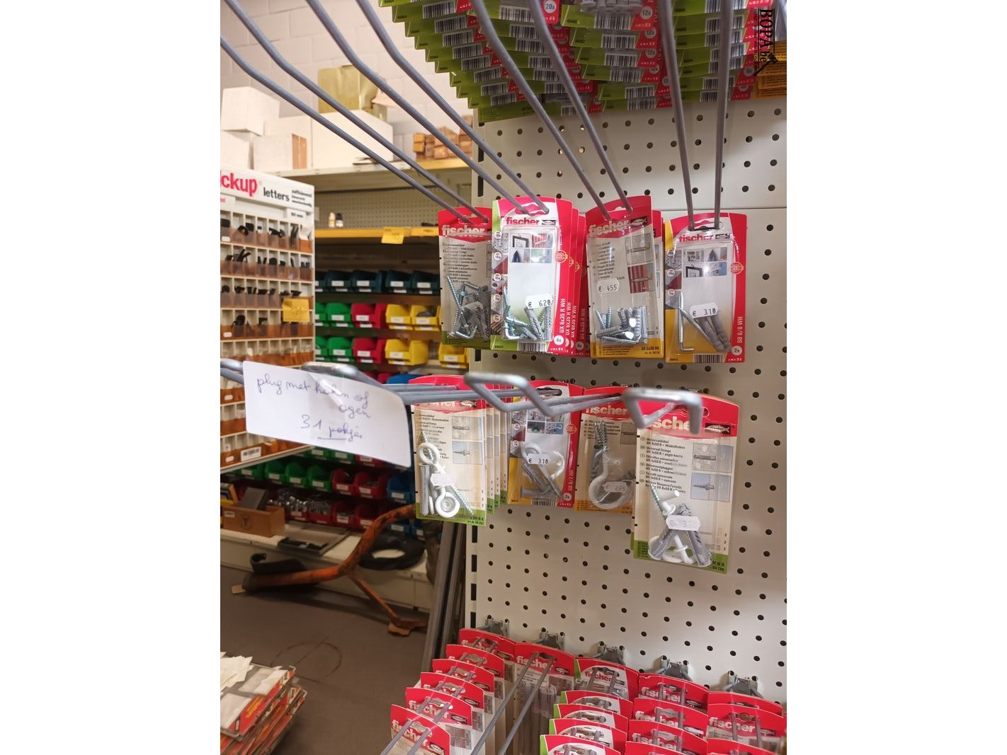 104 x pluggen, 64 x pluggen met schroef, 41 pakjes diversen, 29 pakjes met deurstop, 31 pakjes plug met haak