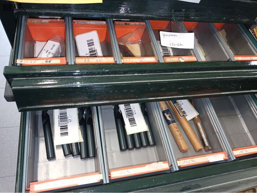 Metalen ladekast met 13 draadtapsets en 120 ijzerboren.