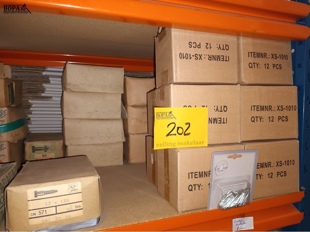 8 dozen haakjes voor kerstballen, 24 dozen houtdraadbouten.