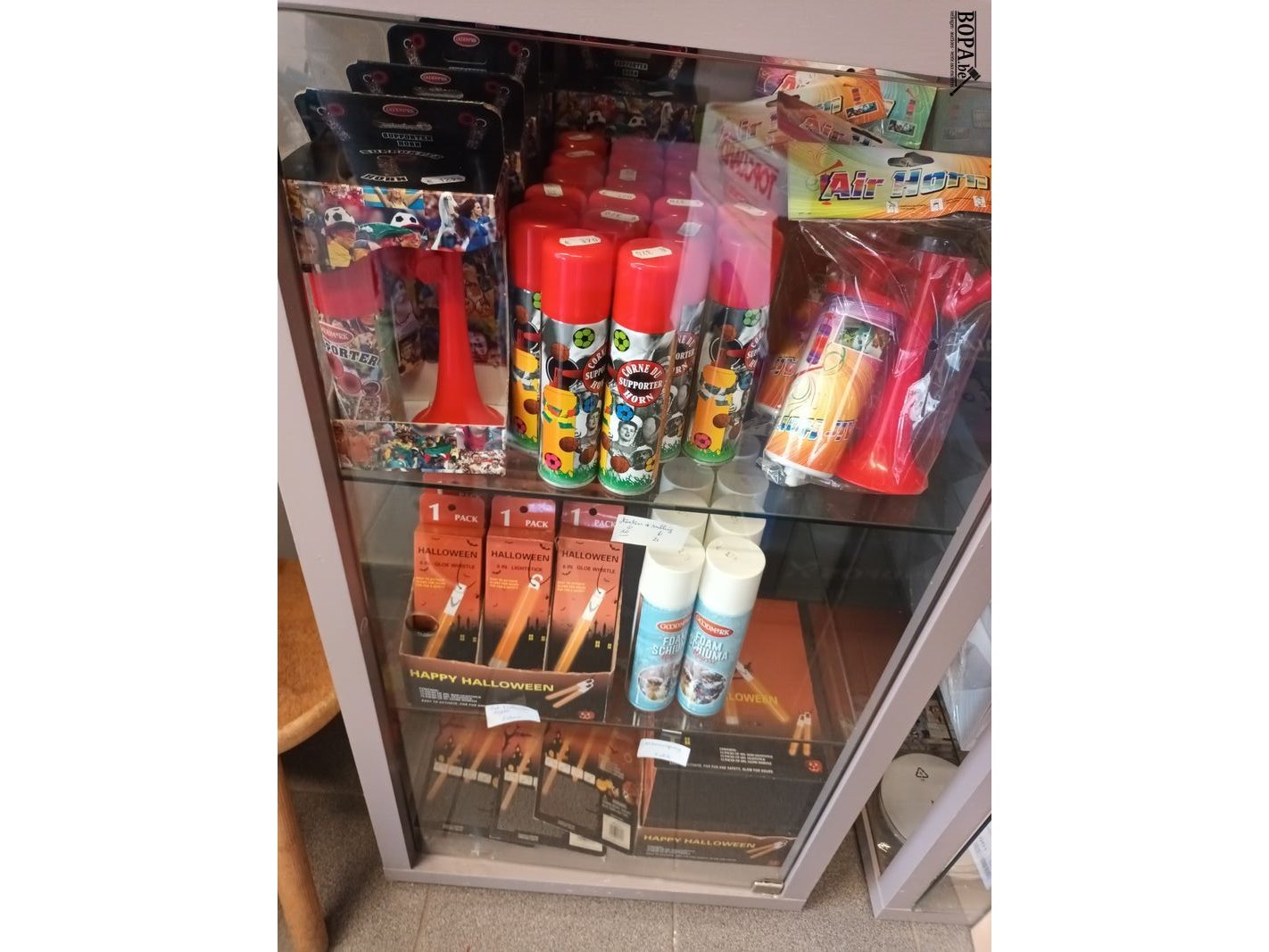 Lot 215 - party materiaal. inhoud vitrine kasten