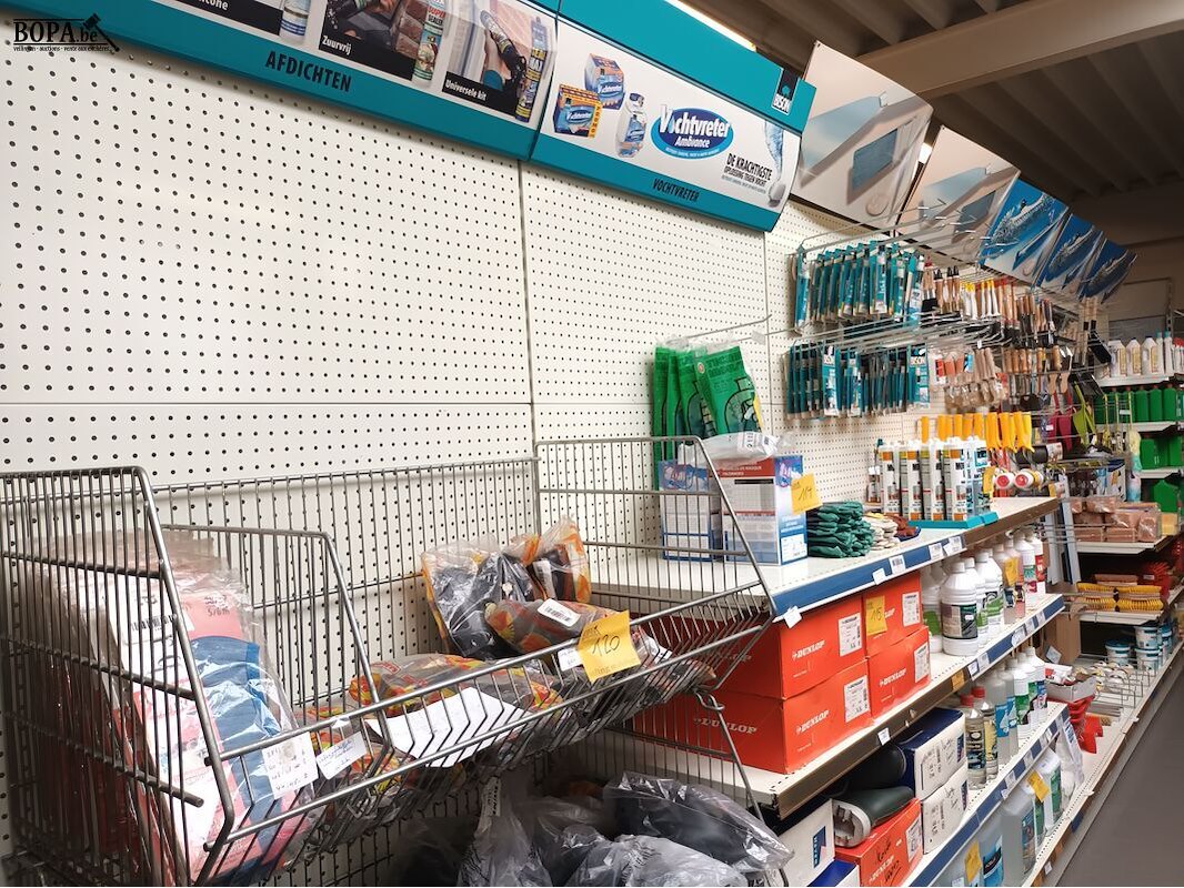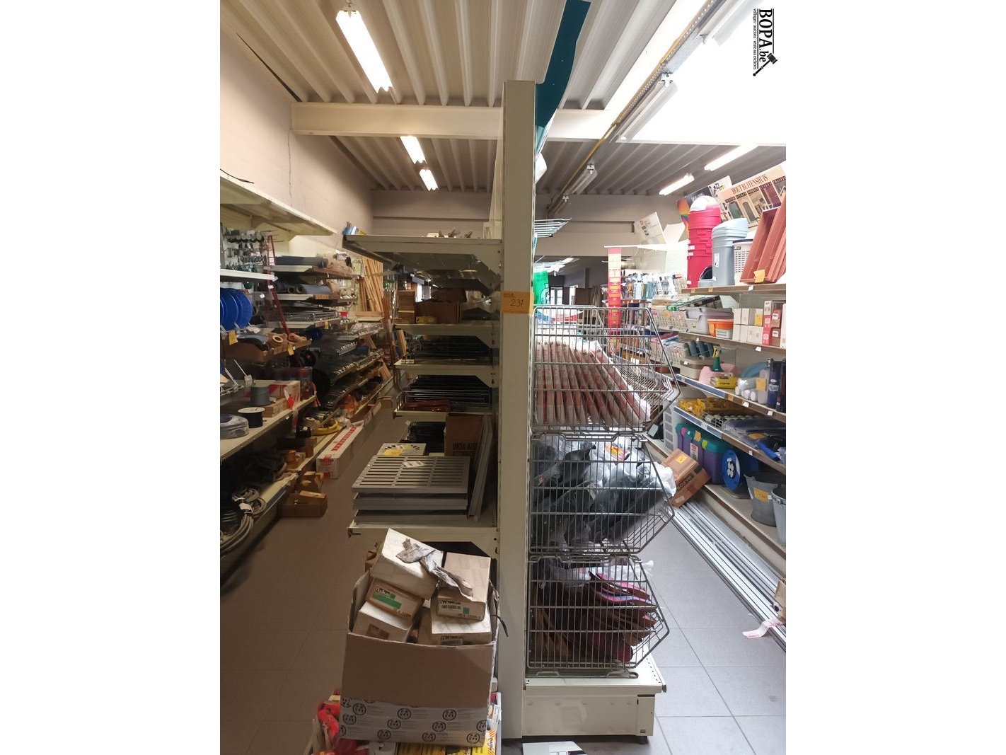 Dubbelzijdig Gondella rek bestaande uit 7 modules van 100 cm. Draadmanden inbegrepen.