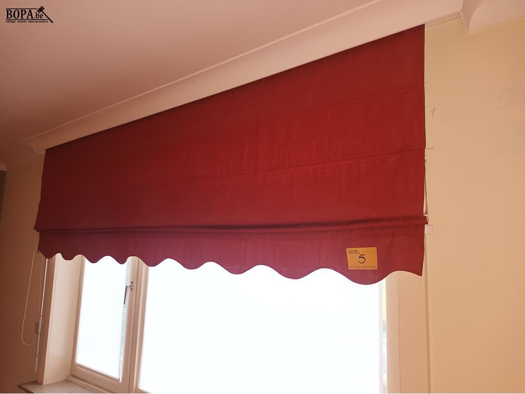 Vouwgordijn. Lengte 270 cm. Hoogte 170 cm.