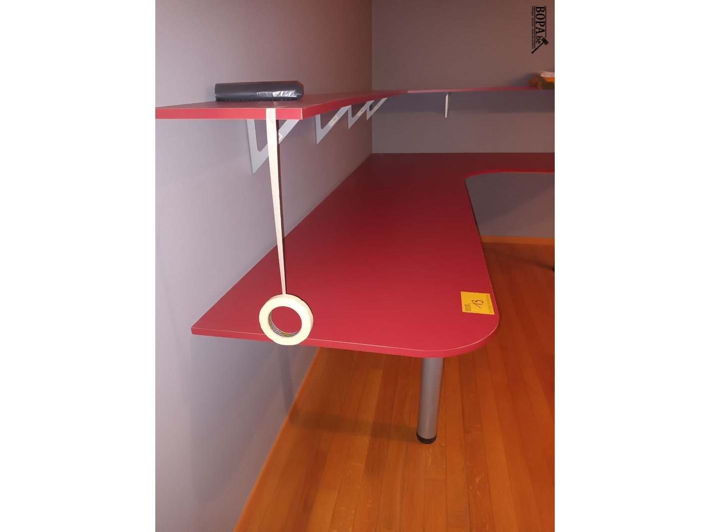 Hoektafel met wandplank. 280 x 180 x 76 cm.