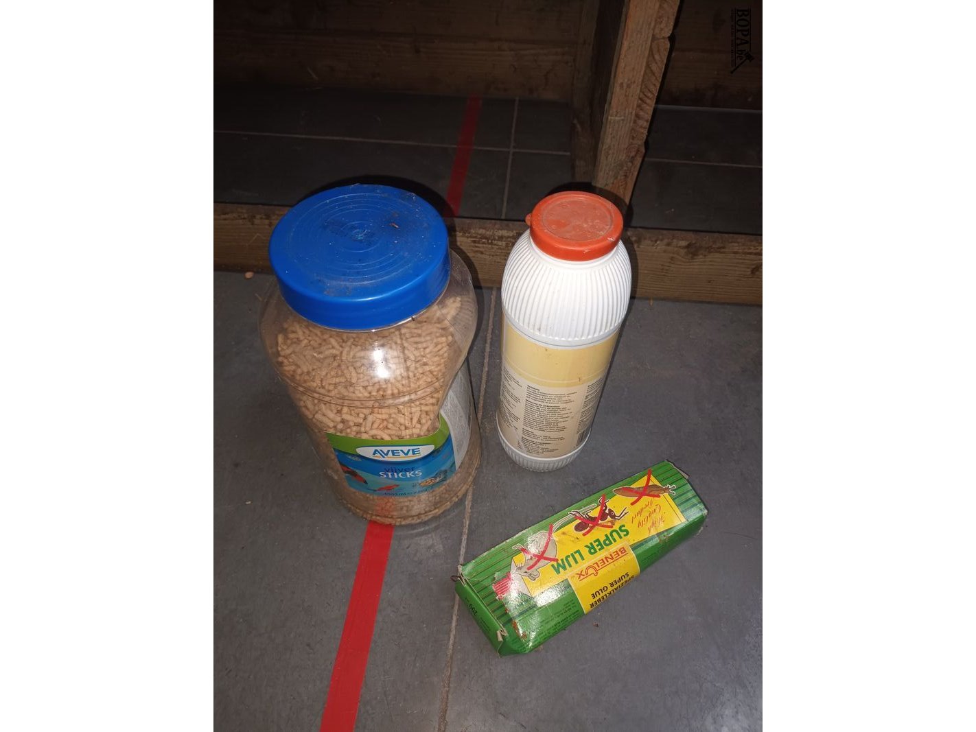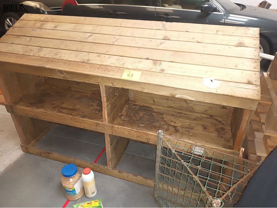 Kippenhok (180 x 92 x 115 cm), hooiruif en producten.