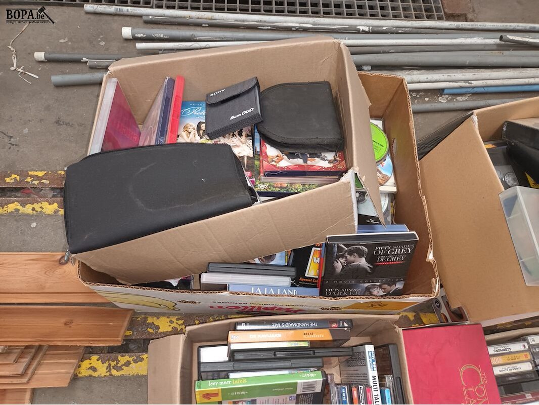 Muziek cd’s, dvd’s, video cassettes, audio cassettes.