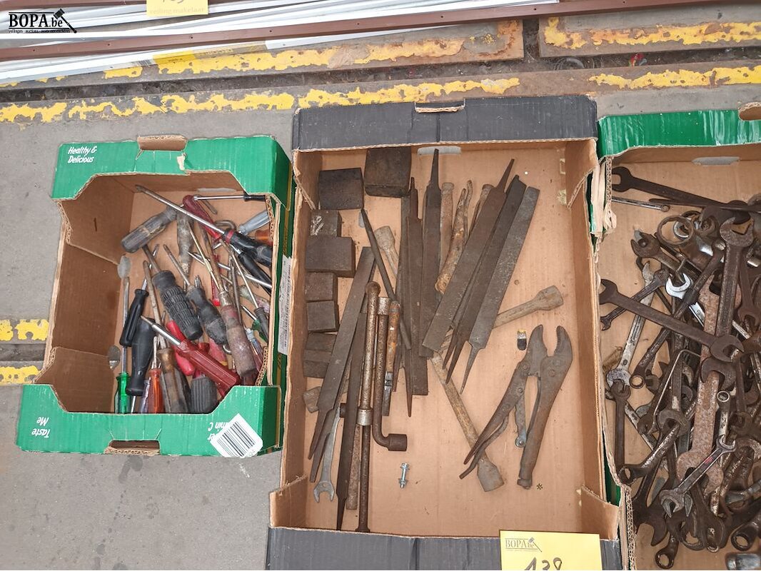 3 bakken met handgereedschap.